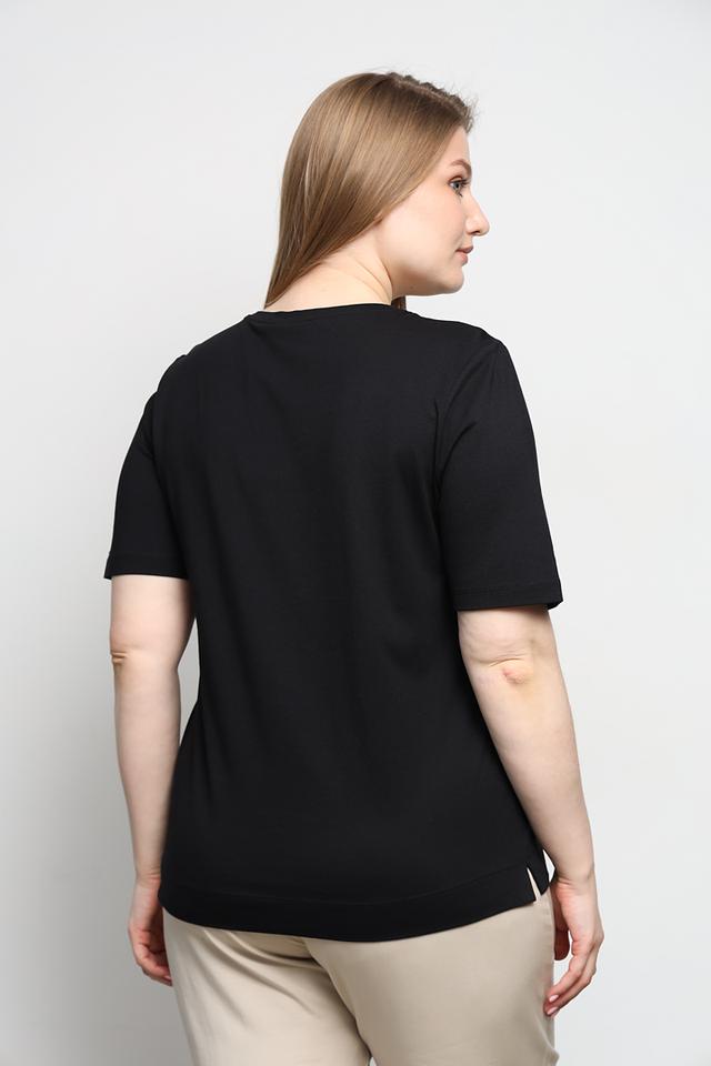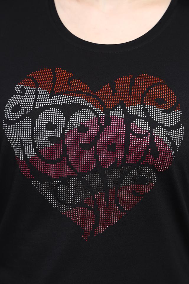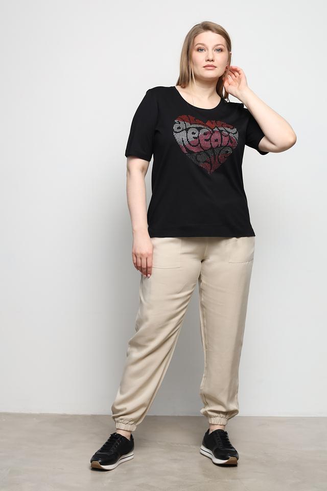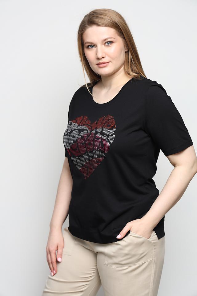 Чёрная футболка Via Appia с ярким принтом в виде сердца, выполненным из страз. Изготовлена из мягкого и приятного к телу сочетания хлопка и модала, обеспечивая комфорт в носке. Состав: хлопок 50%, модал 50%
