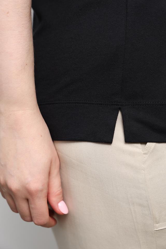 Модель имеет прямой крой, который обеспечивает свободу движений и комфортную посадку по фигуре. Короткие рукава и круглый вырез горловины делают эту футболку универсальной для различных образов.