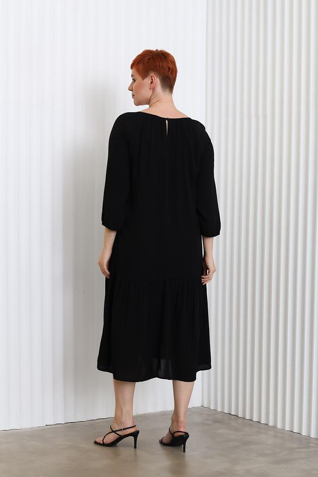 Благодаря своему лаконичному дизайну и универсальному чёрному цвету, это платье станет отличным дополнением к вашему гардеробу и подойдёт для различных случаев – от повседневных прогулок до вечерних мероприятий.