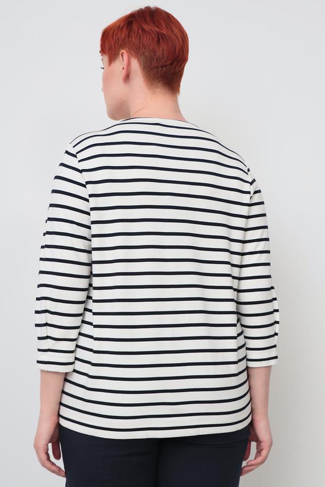 Этот лонгслив от Via Appia станет отличным дополнением к вашему гардеробу. Модель выполнена в классическую бело-синюю полоску, которая всегда актуальна и легко сочетается с другими вещами.