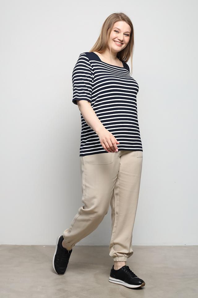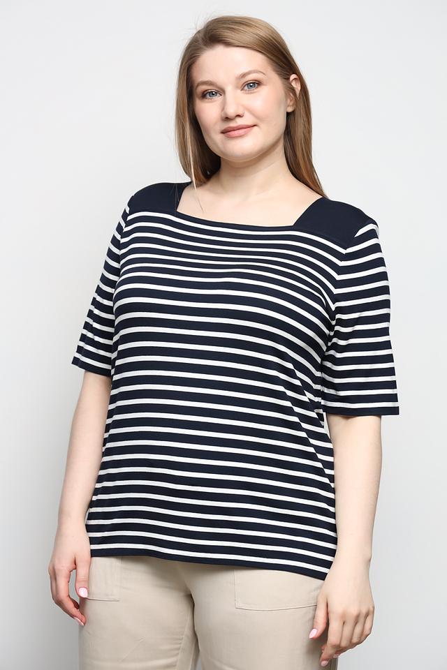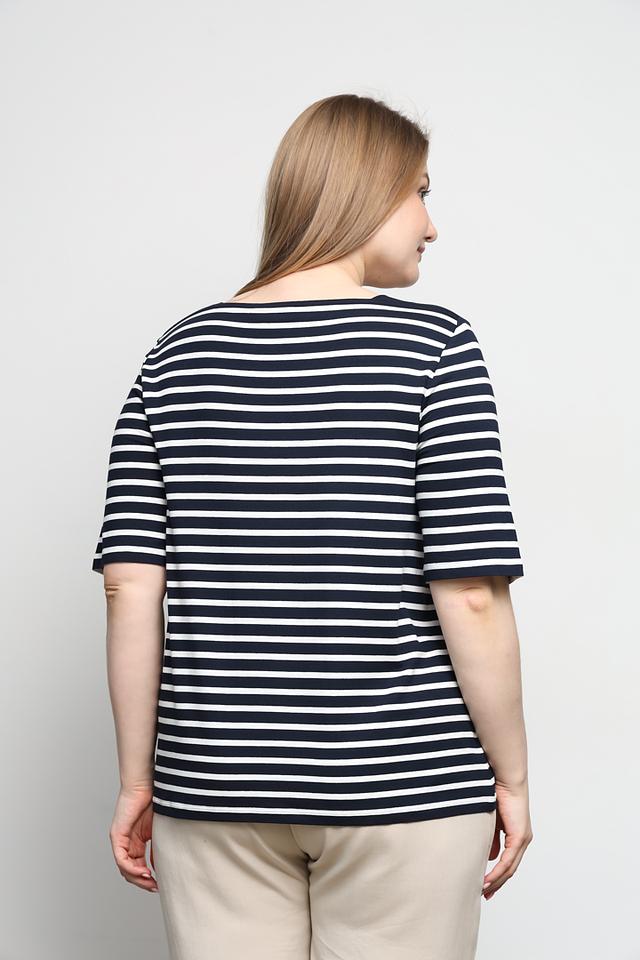 Женская футболка Via Appia в классическую сине-белую полоску. Модель с квадратным вырезом и рукавом 3/4 выполнена из мягкой вискозы с добавлением эластана для комфорта и отличной посадки. Состав: вискоза 90%, эластан 10%