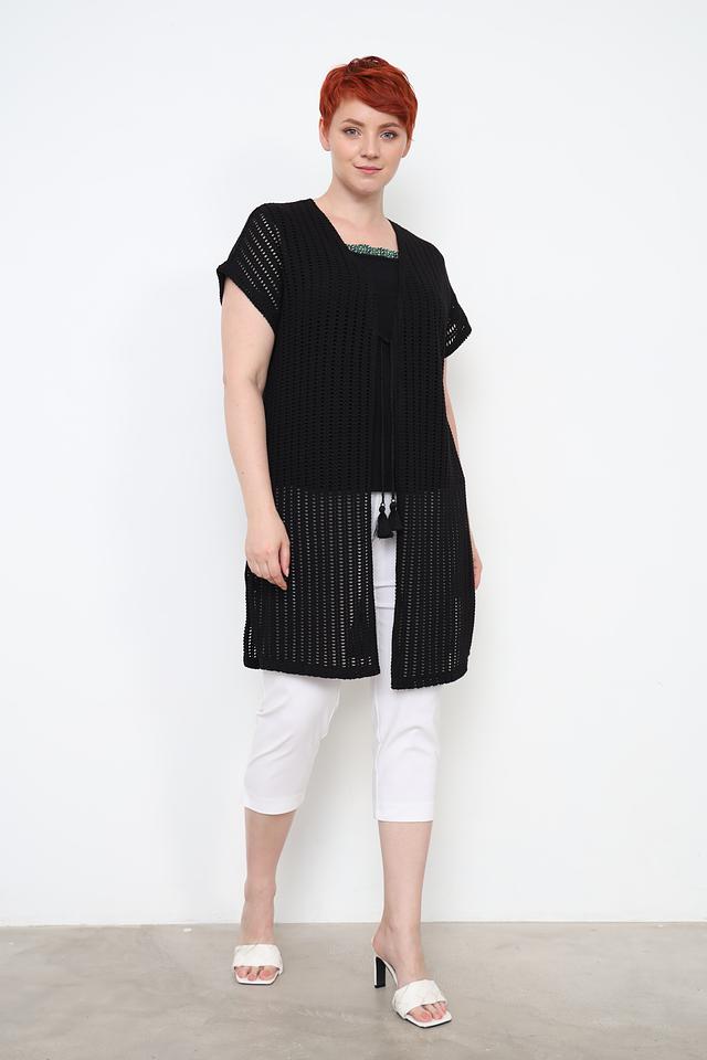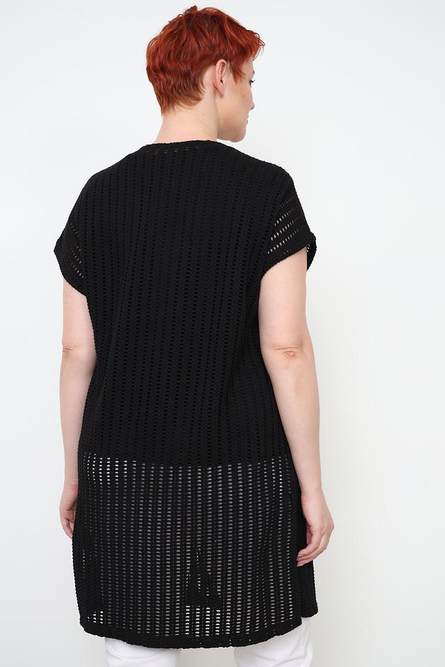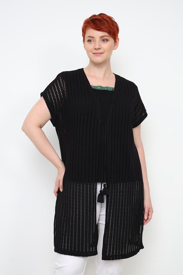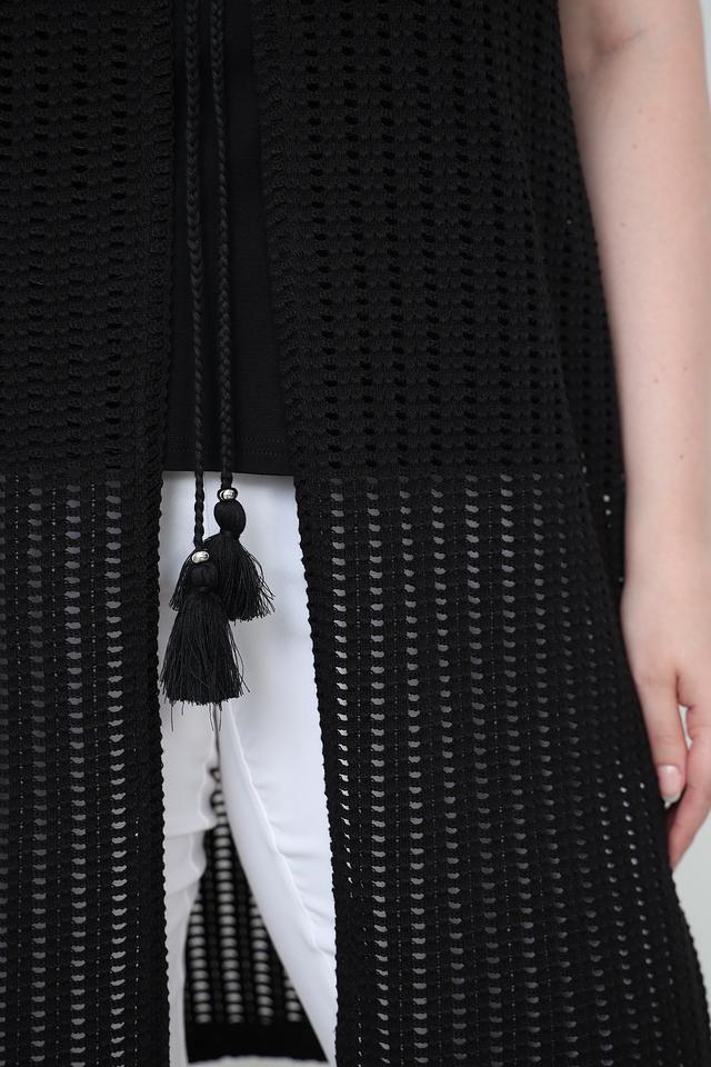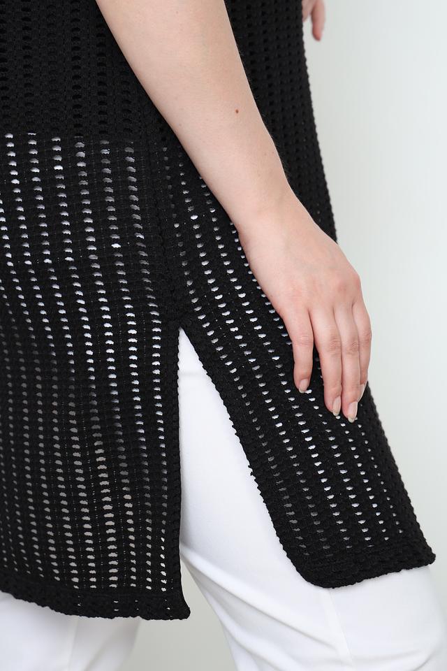 Чёрный жилет Via Appia – это стильный и удобный выбор для создания многослойных образов. Ажурная вязка придает изделию легкость и воздушность, а свободный крой обеспечивает комфорт в носке. Состав: хлопок 97%, эластан 3%