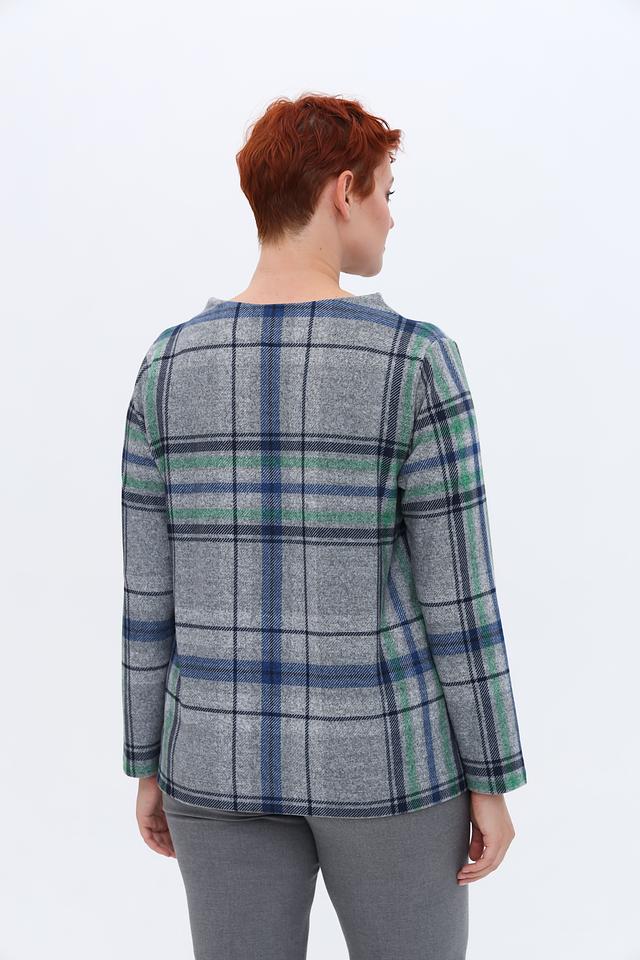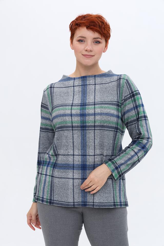 Этот пуловер от Via Appia выполнен в сером цвете и украшен классическим клетчатым принтом, сочетающим в себе оттенки синего и зелёного. Модель имеет свободный крой и круглый вырез горловины, что делает её универсальной и подходящей для различных стилей.