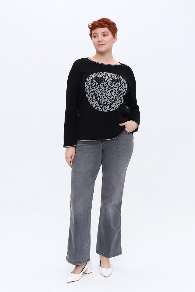 Этот стильный пуловер от Via Appia станет ярким акцентом вашего гардероба. Выполненный в классическом чёрном цвете, он украшен эффектным принтом в виде смайлика, выполненного в леопардовом стиле.