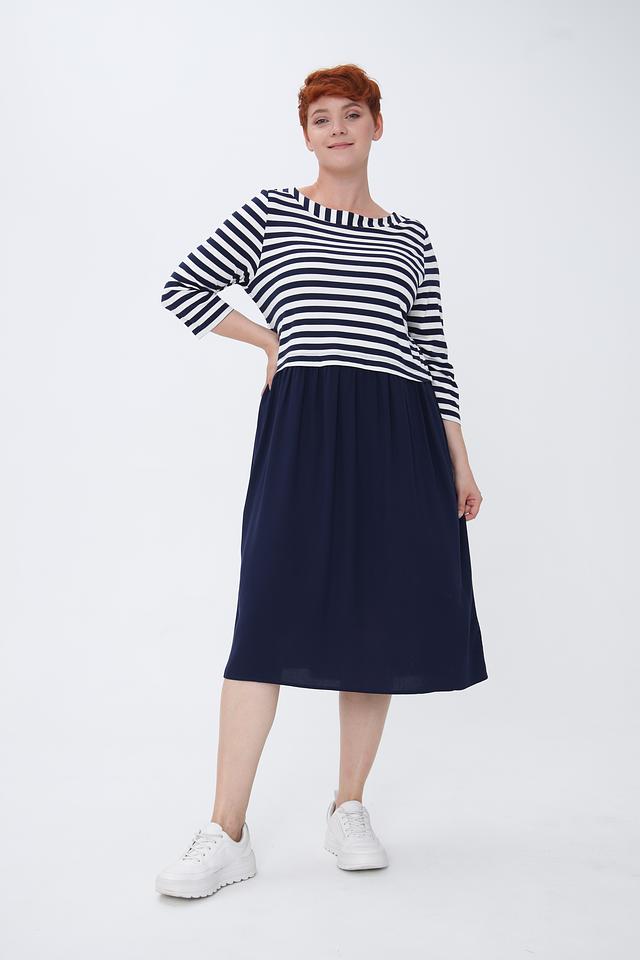 Платье от Via Appia – это идеальный выбор для женщин, ценящих комфорт и стиль. Модель сочетает в себе полосатый верх и однотонную юбку насыщенного синего цвета, создавая интересный и гармоничный образ.