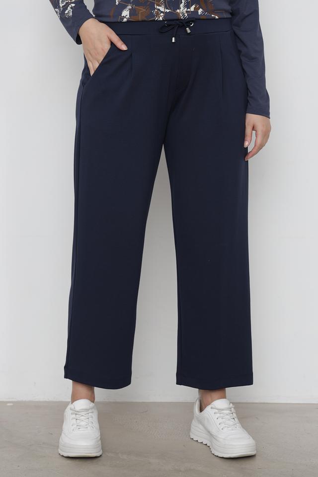 Женские брюки Via Appia темно-синего цвета – это удобная и стильная модель с эластичным поясом и завязками. Брюки выполнены из мягкой вискозы с добавлением полиэстера и эластана, обеспечивающих комфорт и свободу движений. Состав: вискоза 70%, полиэстер 25%, эластан 5%
