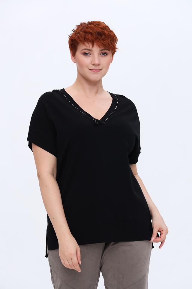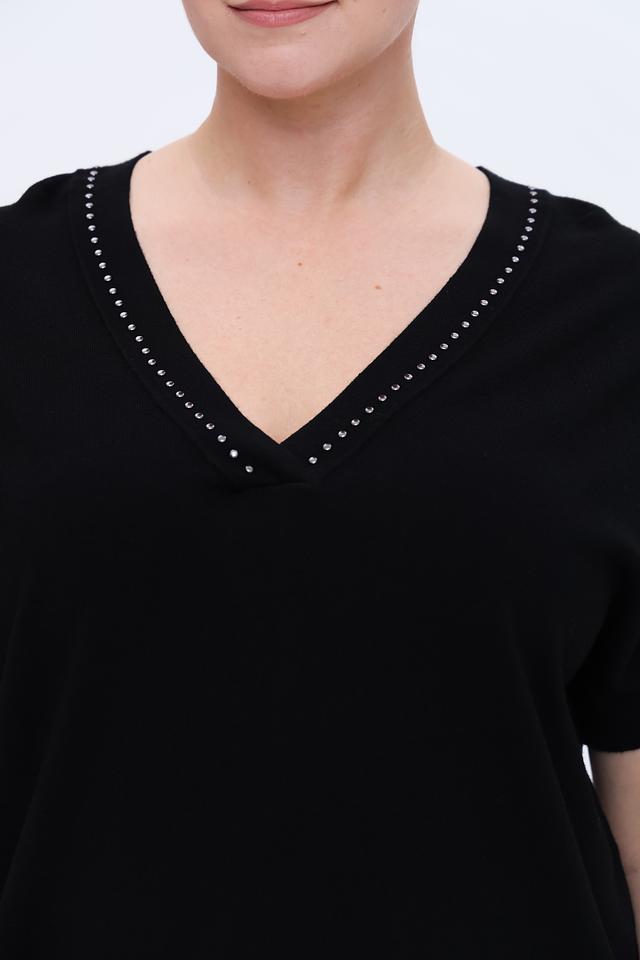 Чёрный жилет Via Appia DUE из вискозы с V-образным вырезом, декорированный стразами. Этот стильный жилет станет отличным дополнением к вашему гардеробу, придавая образу изысканность и женственность. Состав: вискоза 71%, полиамид 29%