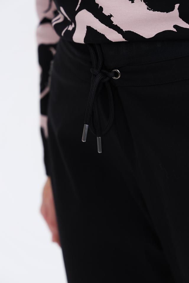 Чёрные брюки Via Appia DUE – это стильное и комфортное решение для повседневного гардероба. Модель выполнена из мягкой ткани с добавлением эластана, обеспечивающего свободу движений. Удобный пояс на резинке с регулирующими шнурками. Состав: хлопок 72%, полиамид 25%, эластан 3%