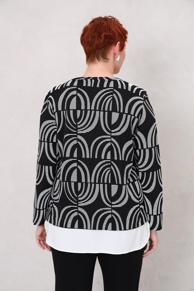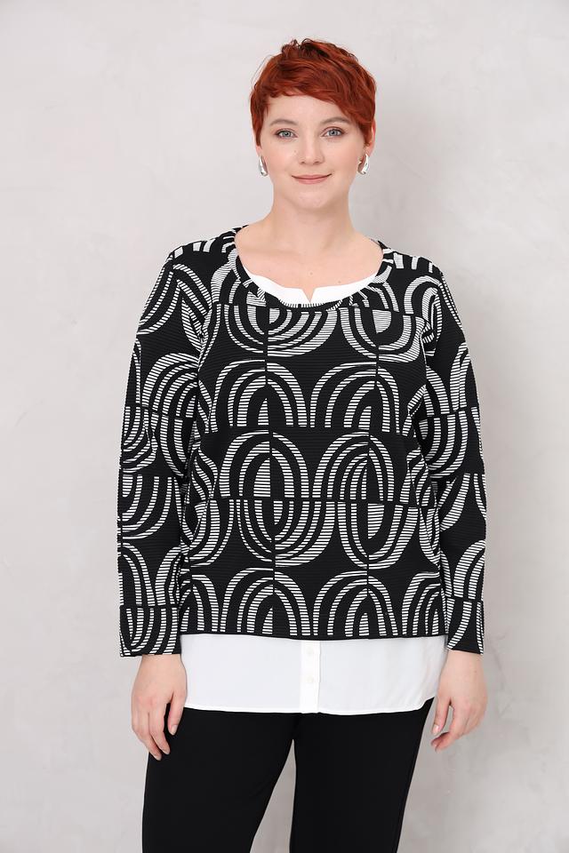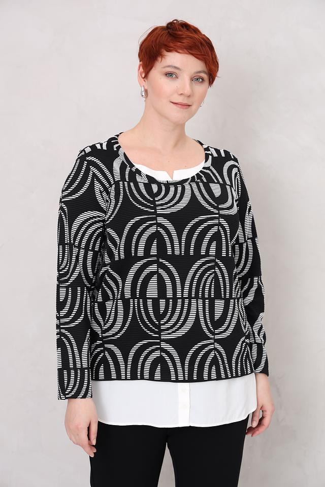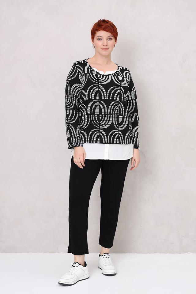 Этот стильный пуловер от Via Appia станет отличным дополнением к вашему гардеробу. Пуловер выполнен в чёрно-белой цветовой гамме и украшен выразительным геометрическим принтом, который придает ему современный вид.