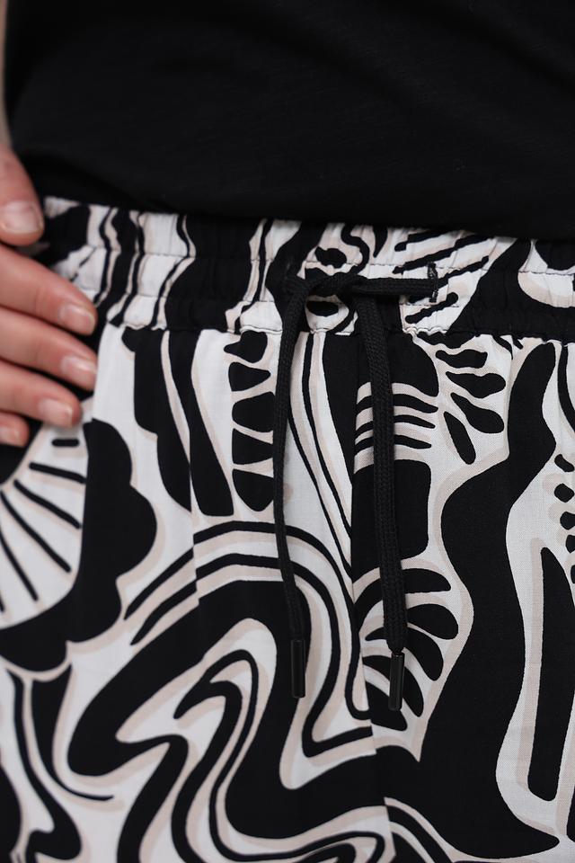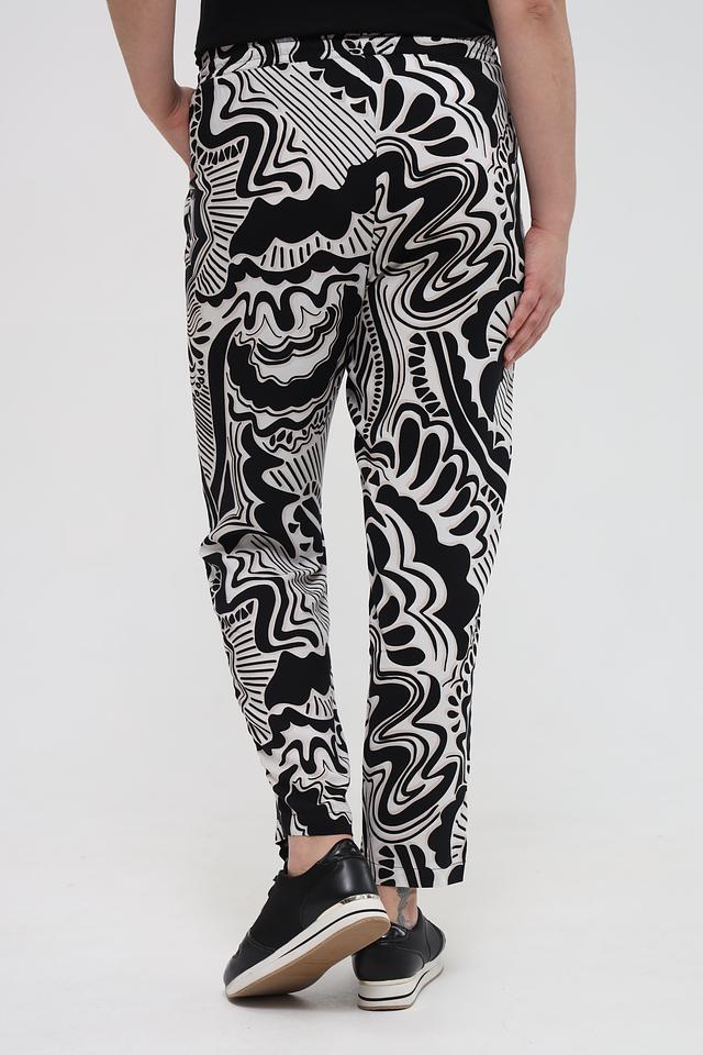 Представляем стильные брюки от бренда Via Appia DUE. Эта модель выполнена в оригинальном дизайне с абстрактным чёрно-белым принтом, который добавит изюминку вашему образу.