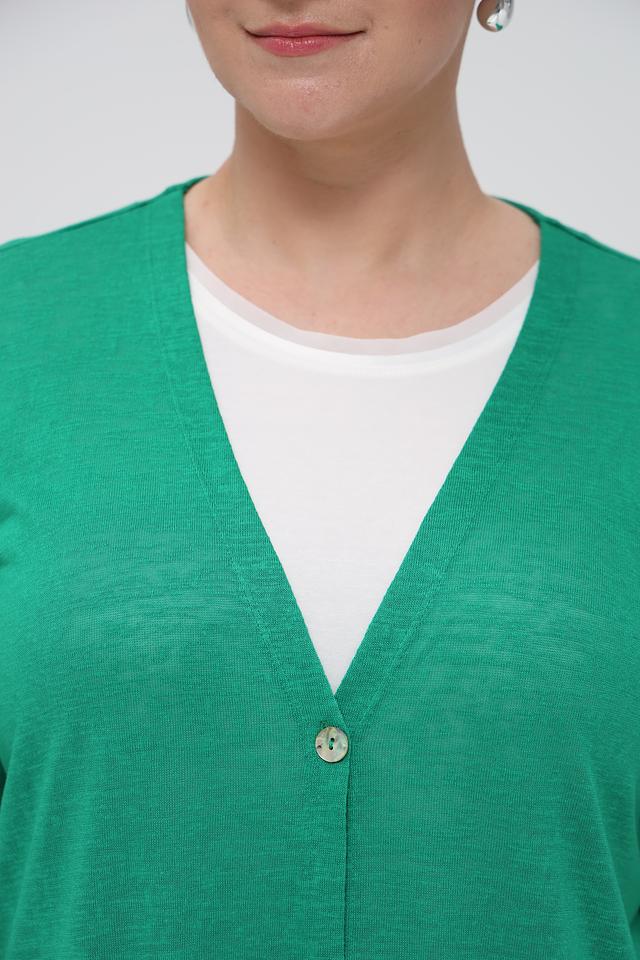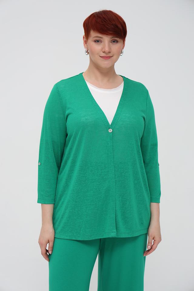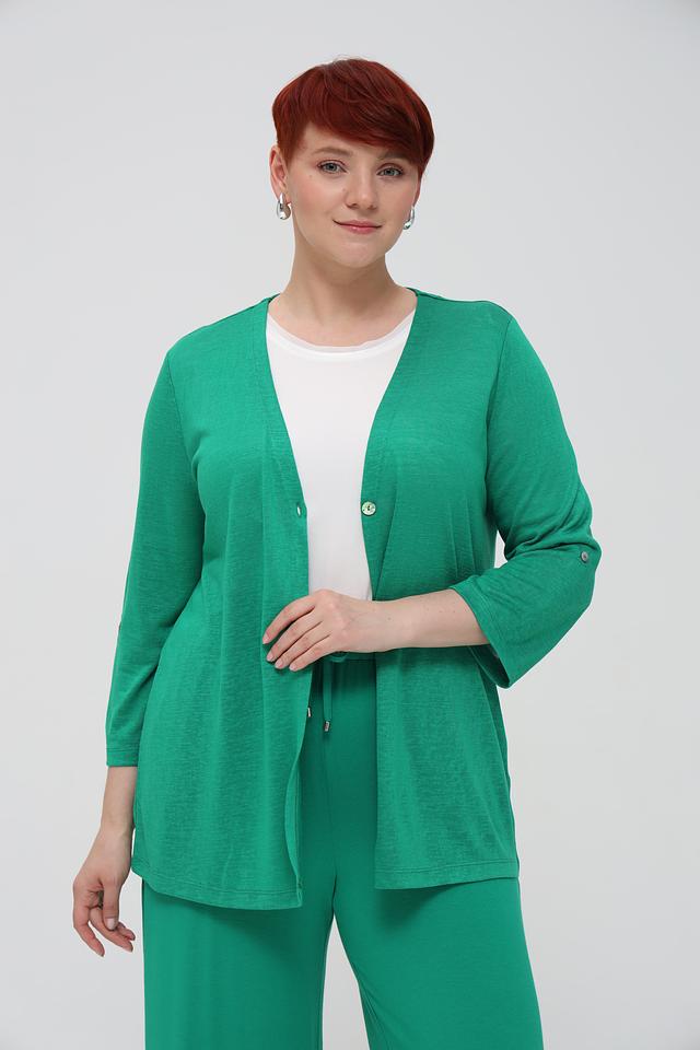 Зелёный жакет Via Appia DUE – это стильная и комфортная модель с V-образным вырезом и рукавами 3/4. Жакет выполнен из мягкой вискозы с добавлением полиэстера, что обеспечивает приятные тактильные ощущения и удобство в носке. Состав: вискоза 70%, полиэстер 30%