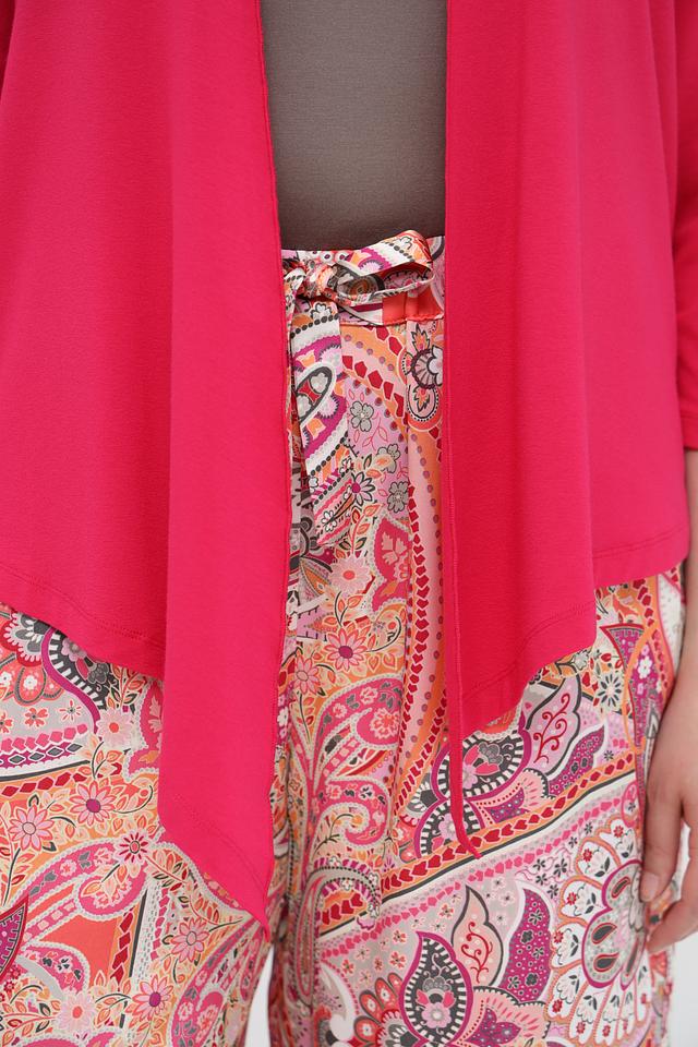 Жакет Via Appia фуксиевого цвета – это стильное и комфортное решение для создания женственного образа. Модель выполнена из мягкой вискозы с добавлением эластана, что обеспечивает приятные тактильные ощущения и хорошую посадку по фигуре. Открытый крой жакета позволяет комбинировать его с различными нарядами. Состав: вискоза 90%, эластан 10%