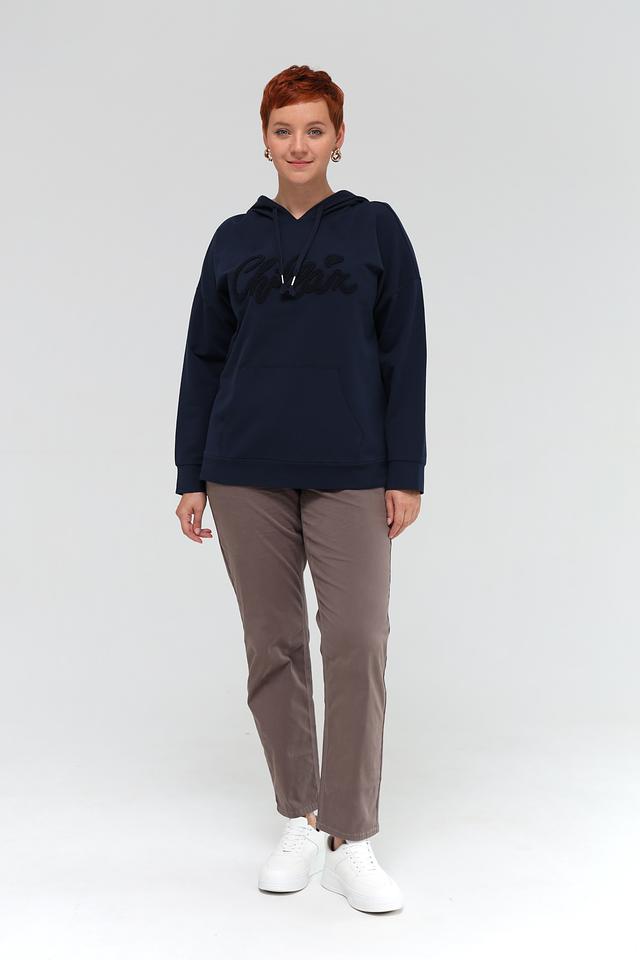 Синий пуловер Via Appia с капюшоном и надписью "Chillax" — комфортная и стильная модель для повседневной носки. Изготовлен из мягкого хлопка с добавлением эластана для удобства и сохранения формы. Состав: хлопок 95%, эластан 5%