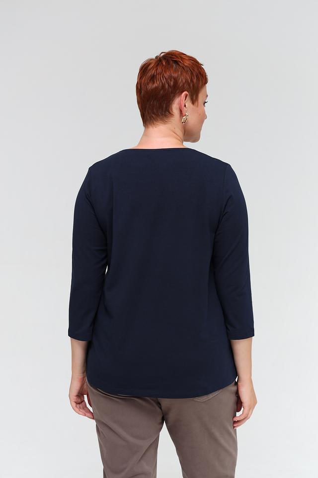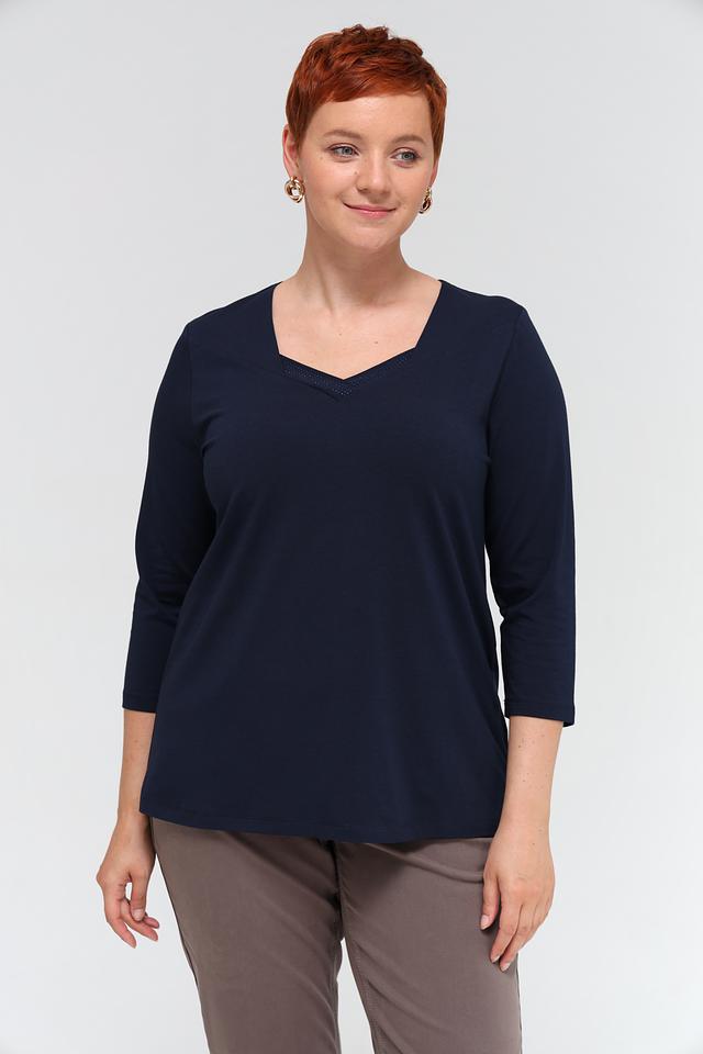 Женская футболка Via Appia DUE темно-синего цвета с рукавом 3/4 и V-образным вырезом. Изготовлена из мягкого и приятного к телу сочетания хлопка и модала, обеспечивающего комфорт в носке. Состав: хлопок 47%, модал 47%, эластан 6%