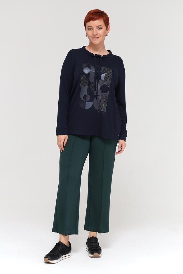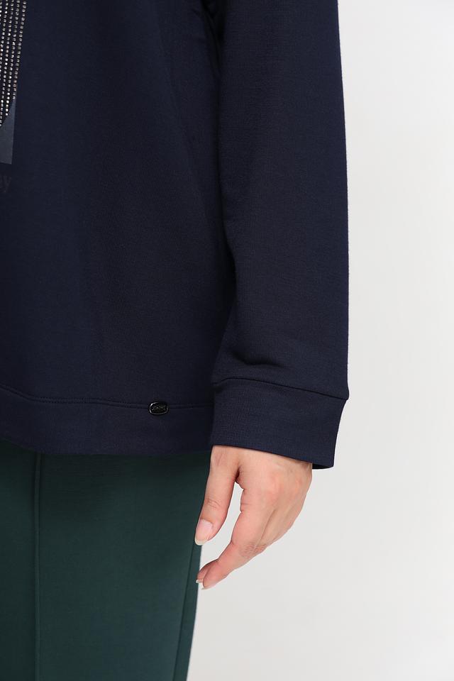 Стильный пуловер Via Appia темно-синего цвета с оригинальным графичным принтом и капюшоном. Изготовлен из мягкой вискозы с добавлением полиэстера и эластана для комфорта и удобства в носке. Состав: вискоза 59%, полиэстер 36%, эластан 5%