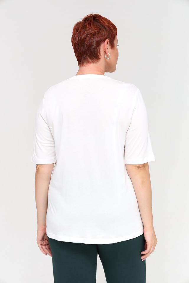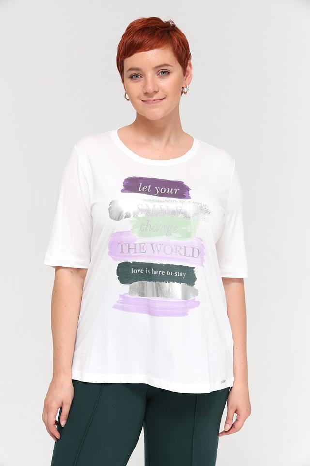 Белая футболка Via Appia с оригинальным принтом – стильное и комфортное решение для повседневного образа. Модель свободного кроя выполнена из мягкого хлопка с модалом, обеспечивающего приятные ощущения на коже. Состав: хлопок 50%, модал 50%