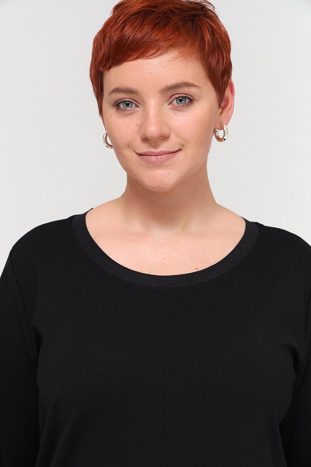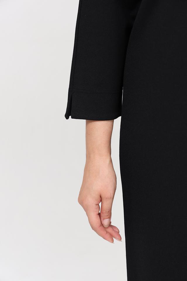 Это платье от Via Appia выполнено в классическом чёрном цвете и имеет прямой силуэт, который подходит для разных типов фигур. Модель с рукавом 3/4 и округлым вырезом горловины. Платье выполнено из приятной к телу ткани, состоящей из 70% вискозы, 25% полиэстера и 5% эластана.