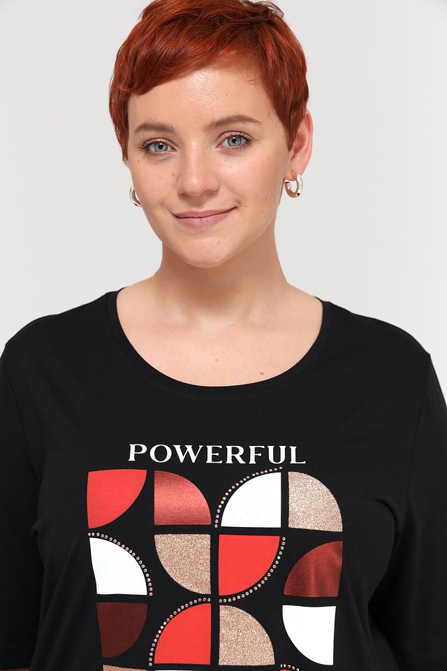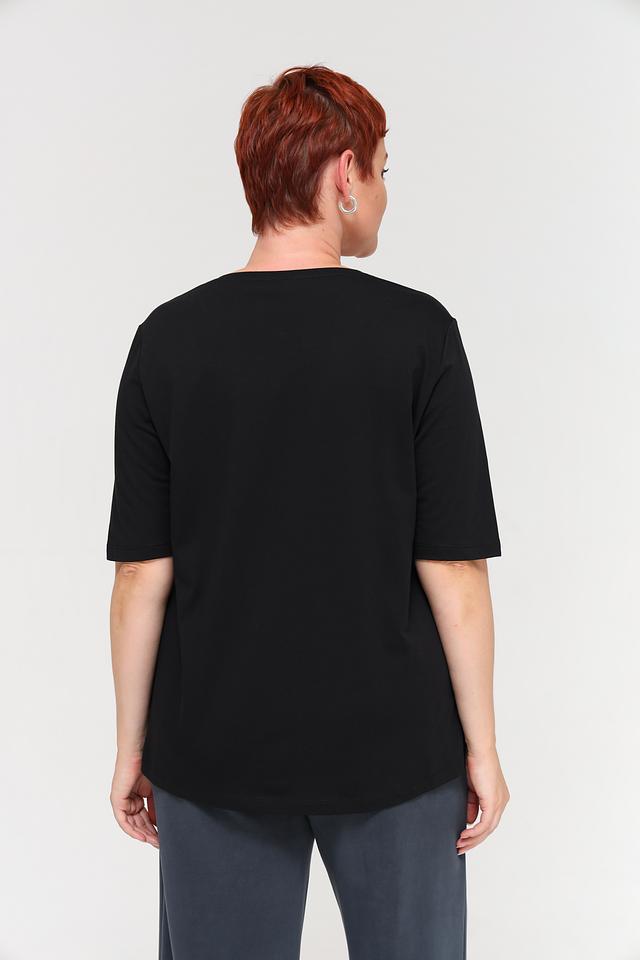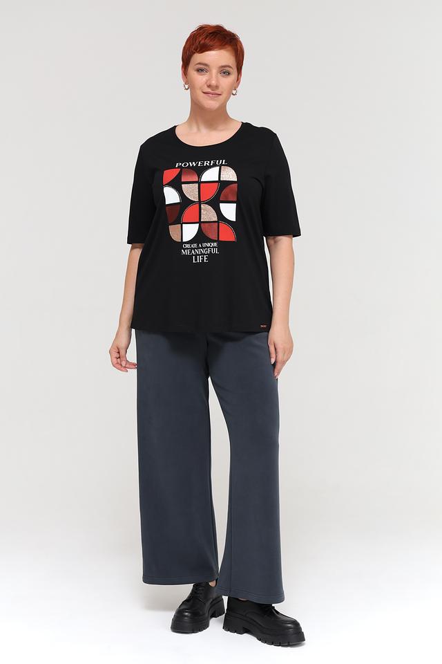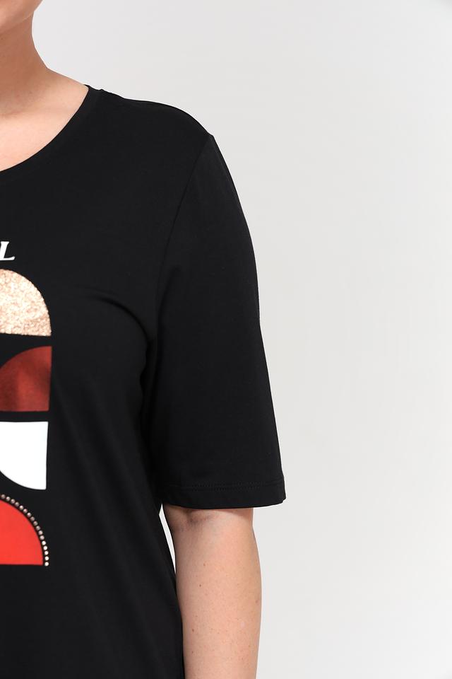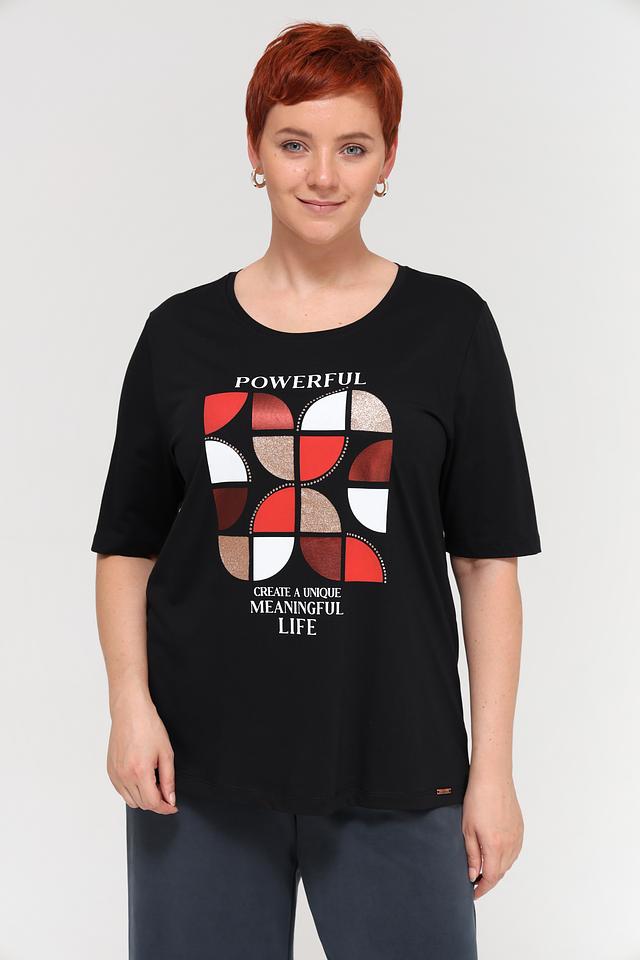 Чёрная футболка Via Appia с оригинальным графичным принтом. Модель свободного кроя выполнена из мягкого хлопка с модалом, обеспечивающего комфорт в носке. Идеальный выбор для создания стильного повседневного образа. Состав: хлопок 50%, модал 50%