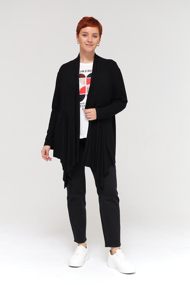 Черный жакет Via Appia – это стильная и комфортная модель с V-образным вырезом и асимметричным кроем. Жакет выполнен из мягкой вискозы с добавлением эластана, что обеспечивает удобную посадку и свободу движений. Состав: вискоза 93%, эластан 7%