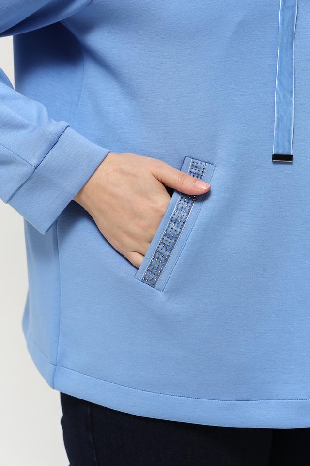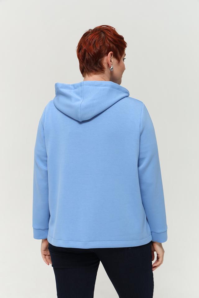 Этот стильный жакет от Via Appia станет отличным дополнением к вашему гардеробу. Он выполнен в нежном голубом цвете и имеет удобный капюшон, который защитит от ветра и непогоды.
