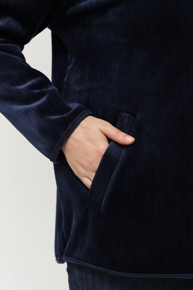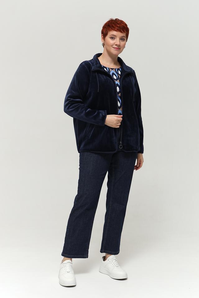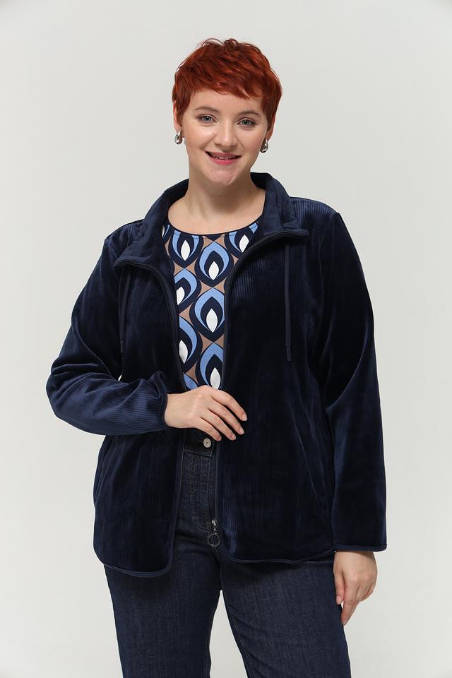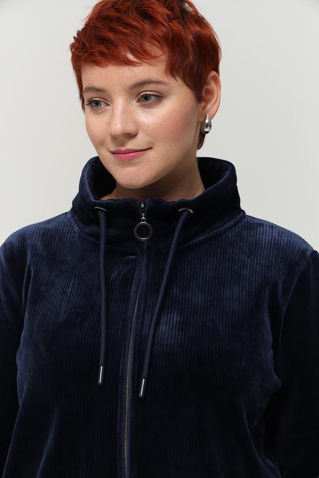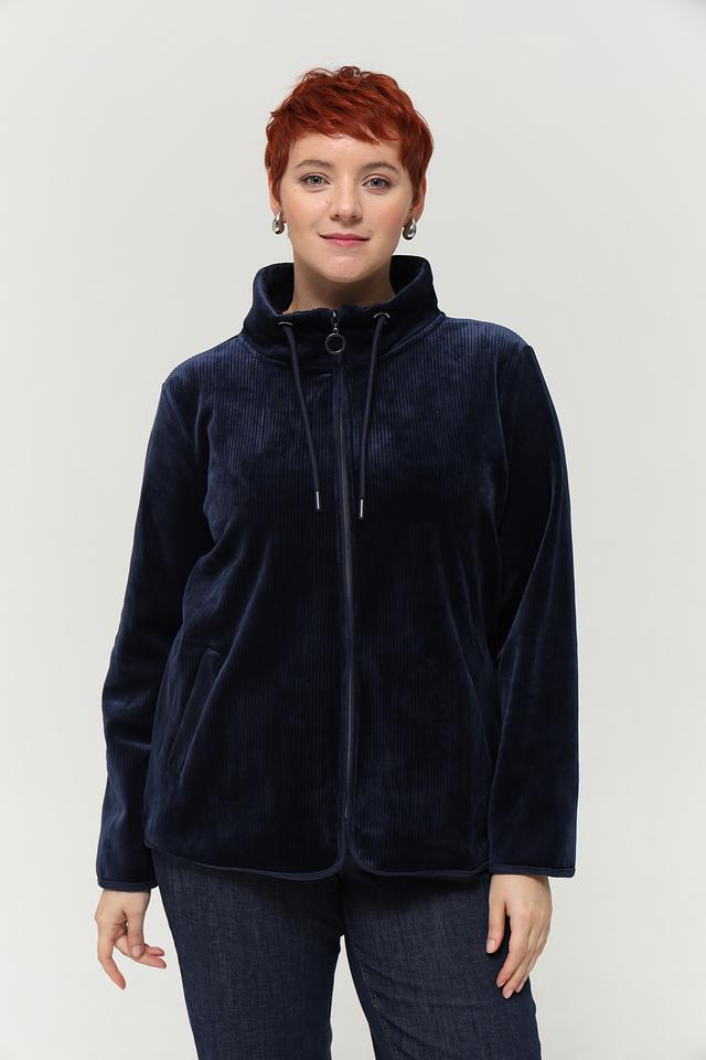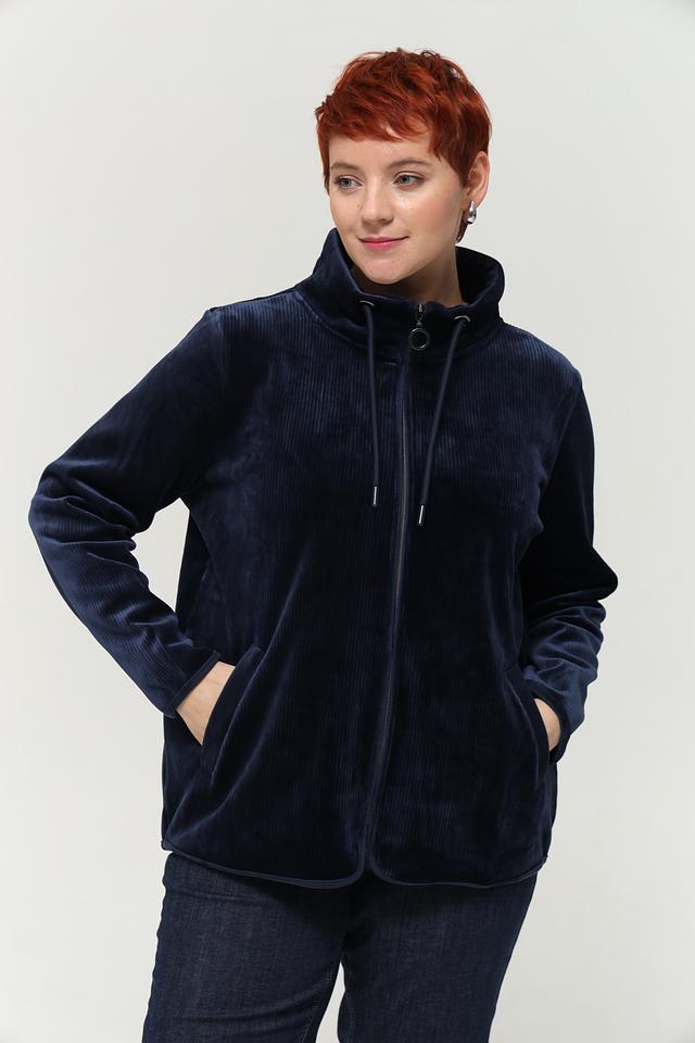 Тёмно-синий жакет Via Appia из вельвета – стильная и комфортная модель на молнии с воротником-стойкой. Жакет имеет удобные боковые карманы и выполнен из мягкой ткани с добавлением эластана для свободы движений. Состав: полиэстер 97%, эластан 3%