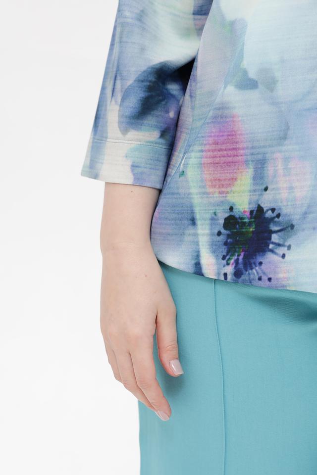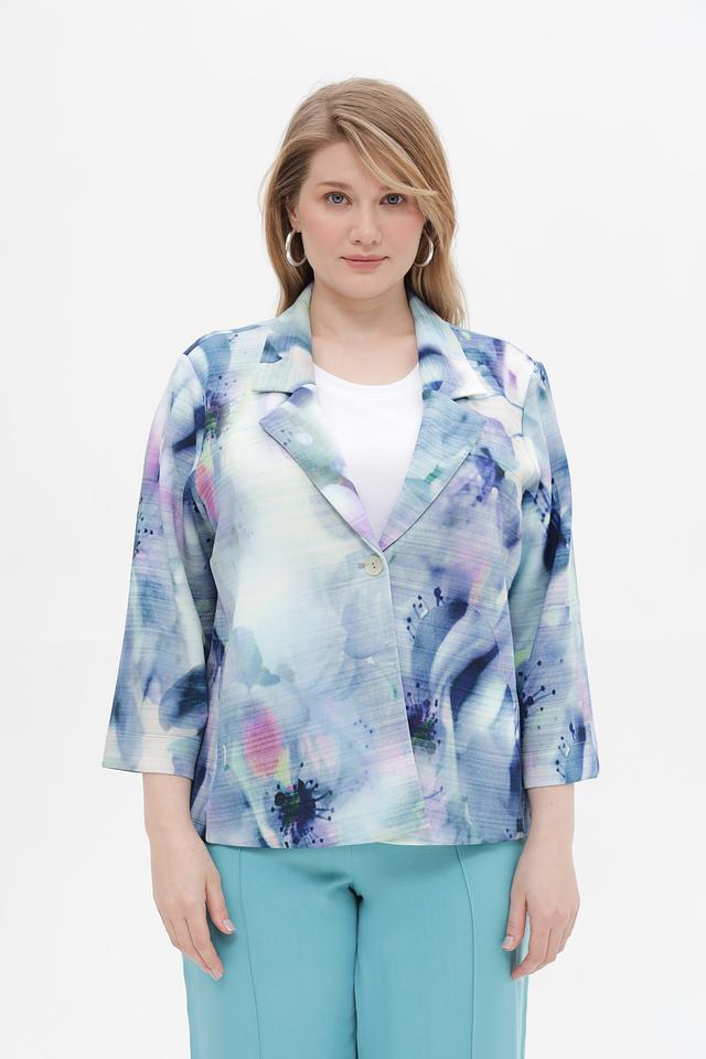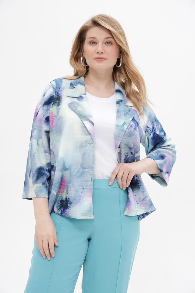 Этот жакет от Via Appia – идеальный выбор для создания элегантного и современного образа. Жакет выполнен в светло-голубой цветовой гамме и украшен ярким абстрактным принтом, который делает его уникальным и запоминающимся.