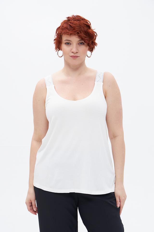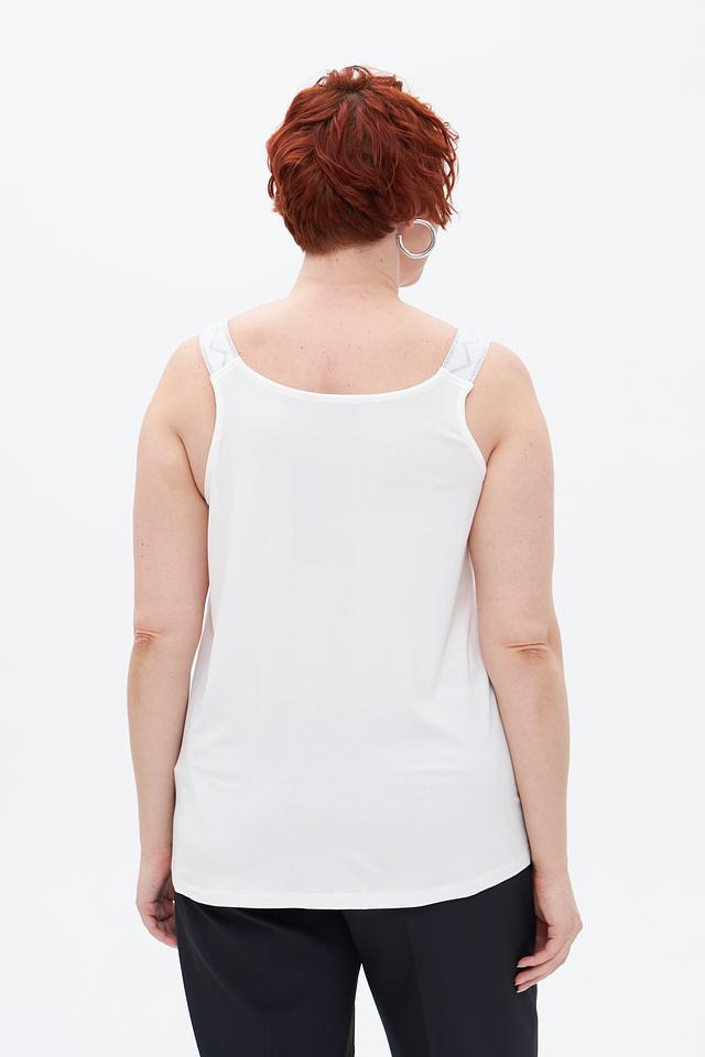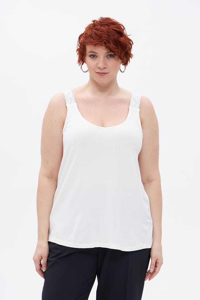 Белый топ Via Appia из вискозы с тонкими бретелями. Модель имеет округлый вырез и свободный крой, обеспечивающий комфорт в носке. Состав: 94% вискоза, 6% эластан. Состав: вискоза 94%, эластан 6%