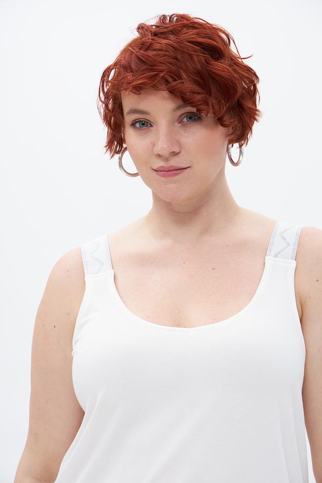 Топ имеет свободный крой, который не сковывает движения и обеспечивает комфорт в течение всего дня. Тонкие бретели добавляют изящества, а округлый вырез подчеркивает линию шеи.