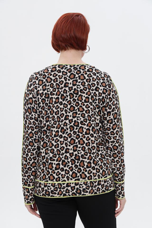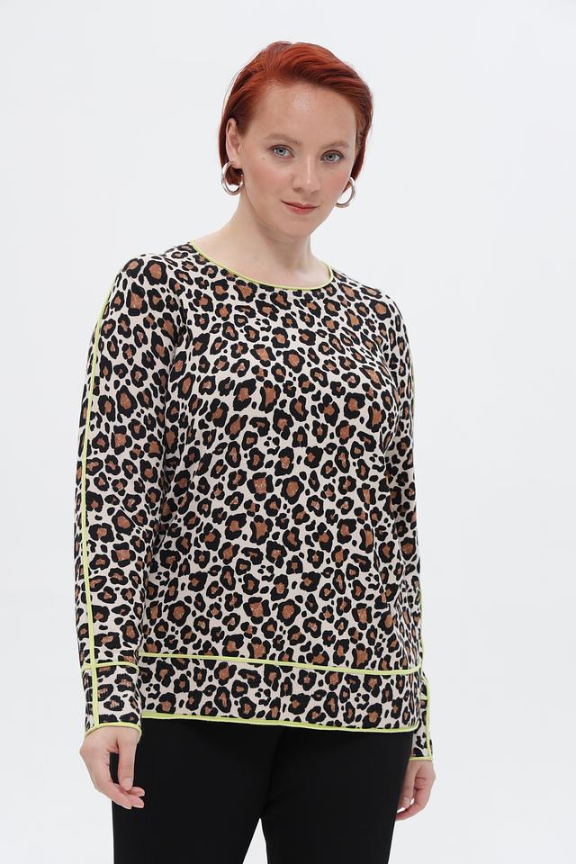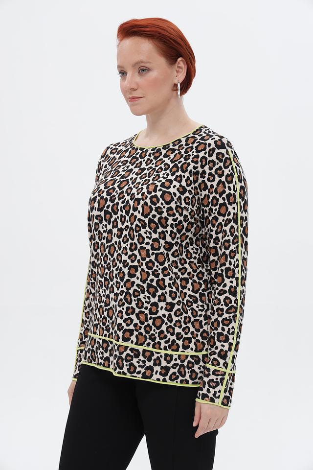 Бежевый пуловер от Via Appia с ярким леопардовым принтом и отделкой лаймового цвета. Модель выполнена из мягкой вискозы с добавлением полиамида, обеспечивающей комфорт и износостойкость. Состав: вискоза 72%, полиамид 28%