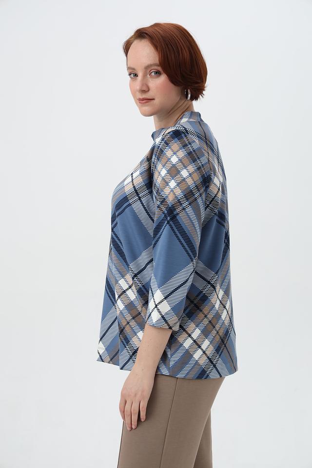 Блуза имеет округлый вырез горловины и рукава длиной три четверти. Она идеально подходит для создания повседневных образов, а также может быть уместна в более формальной обстановке в сочетании с брюками или юбкой. Состав: вискоза 61%, полиамид 23%, эластан 16%.