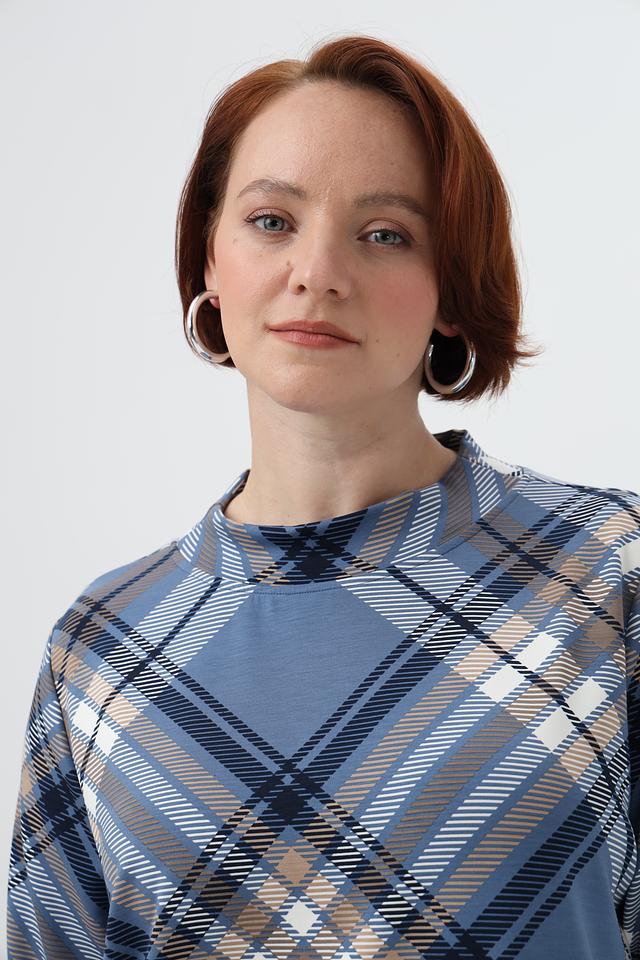 Блуза Via Appia голубого цвета с принтом "клетка" станет отличным дополнением к вашему гардеробу. Модель выполнена из мягкой вискозы с добавлением полиамида и эластана, что обеспечивает комфорт и удобство в носке. Состав: вискоза 61%, полиамид 23%, эластан 16%