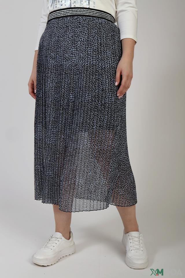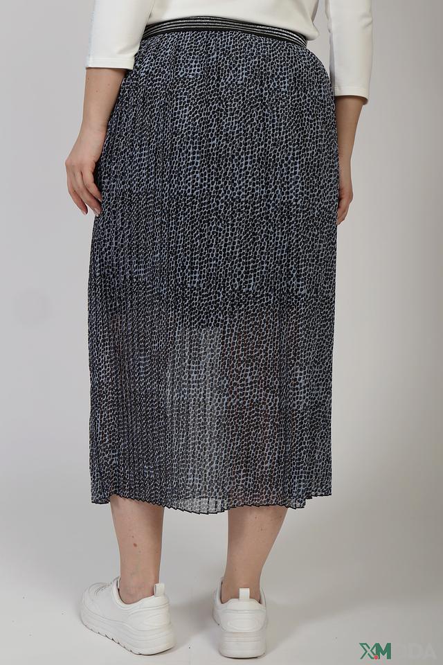 Юбка имеет длину миди и плиссированный крой, который придает ей легкость и динамичность. Привлекательный леопардовый принт в синих тонах делает эту модель особенно интересной и запоминающейся.