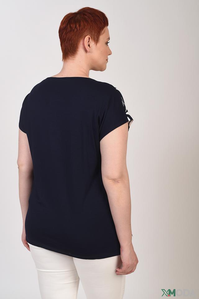 Блуза имеет свободный крой, который не сковывает движений и позволяет создать расслабленный силуэт. V-образный вырез горловины добавляет изящества, а короткие рукава делают ее идеальным выбором для теплой погоды. Состав ткани: 94% вискоза, 6% эластан.