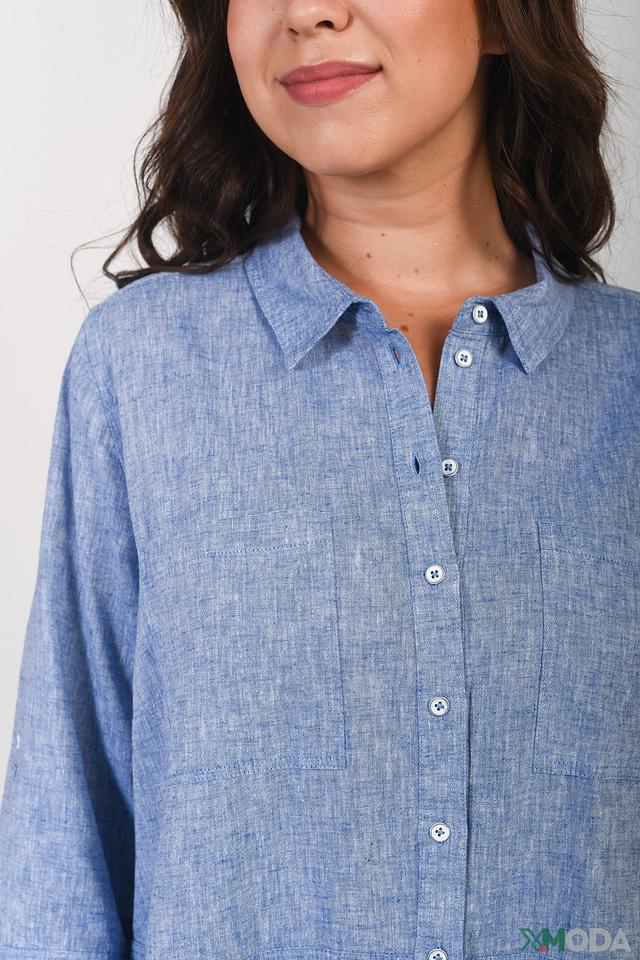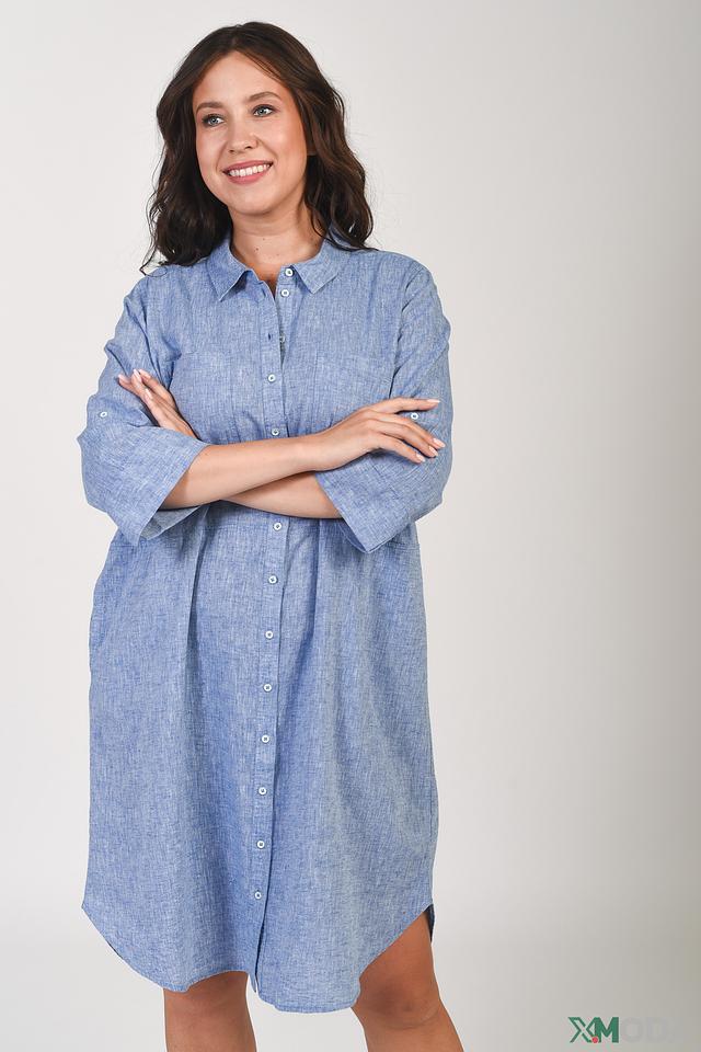 Платье рубашка Via Appia голубого цвета – это стильное и комфортное решение для повседневного образа. Модель выполнена из натурального хлопка с добавлением льна, что обеспечивает легкость и воздухопроницаемость. Платье имеет рубашечный крой с застежкой на пуговицы и рукавами 3/4. Состав: хлопок 70%, лен 30%
