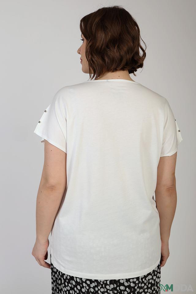 Белая футболка Via Appia с короткими рукавами и декоративными разрезами на плечах. Изготовлена из мягкого и приятного к телу сочетания хлопка и модала, обеспечивающего комфорт в носке. Состав: хлопок 50%, модал 50%
