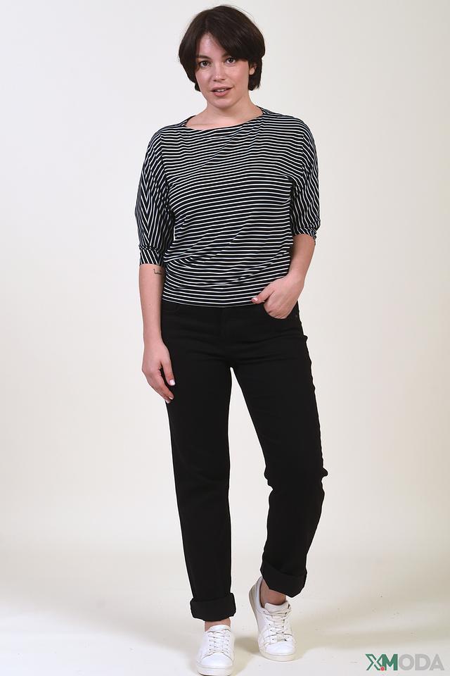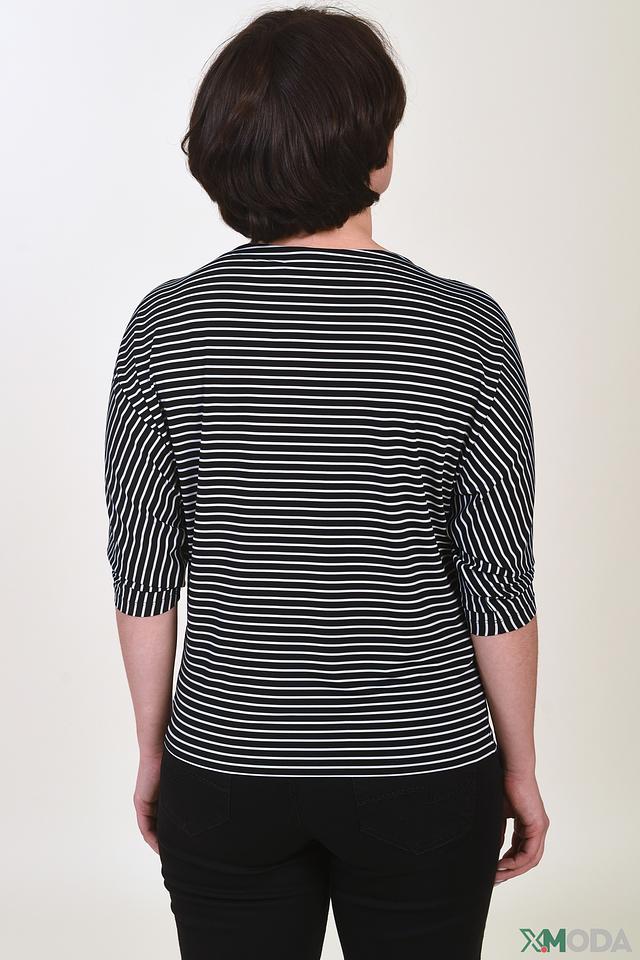 Женский пуловер Via Appia чёрно-белого цвета с полоской и рукавом 3/4. Модель выполнена из мягкой вискозы с добавлением полиэстера и эластана, обеспечивающих комфорт и хорошую посадку. Состав: вискоза 75%, полиэстер 20%, эластан 5%