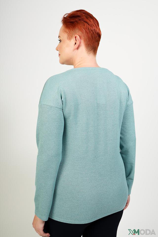 Текстура ткани слегка мерцает, что придает пуловеру изысканность. Он идеально подходит для создания повседневных и более нарядных образов. Пуловер легко сочетается с джинсами, брюками или юбками.