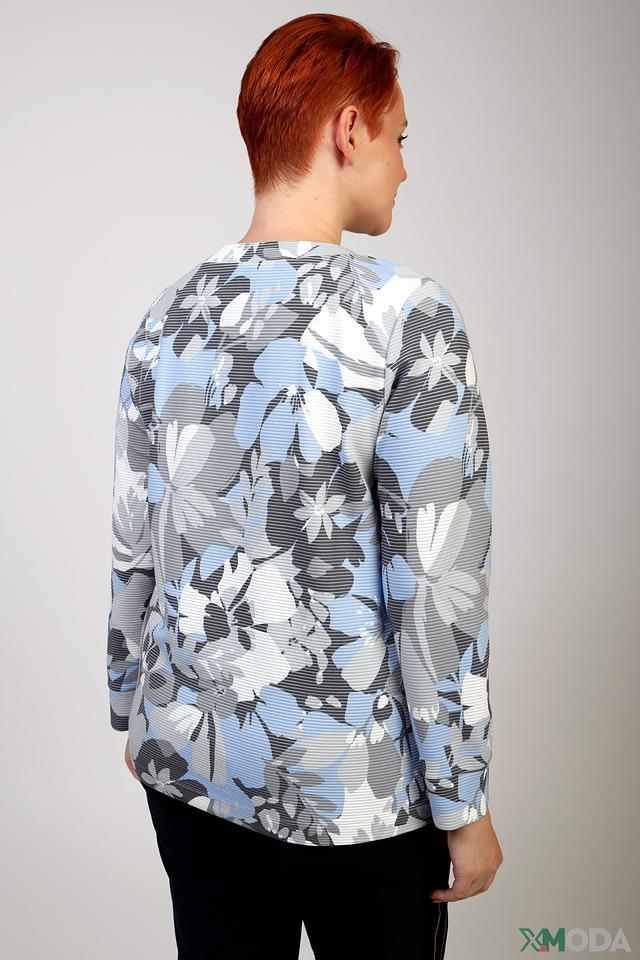 Этот стильный пуловер от Via Appia станет прекрасным выбором для создания повседневного образа. Пуловер выполнен в светло-голубой цветовой гамме и украшен ярким цветочным принтом, состоящим из серых и белых элементов.