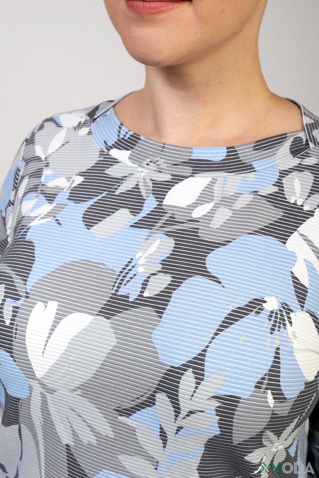 Женский пуловер Via Appia голубого цвета с оригинальным цветочным принтом станет отличным дополнением к вашему гардеробу. Модель выполнена из мягкой и приятной к телу вискозы с добавлением полиэстера и эластана, обеспечивающих комфорт и хорошую посадку. Состав: вискоза 76%, полиэстер 20%, эластан 4%