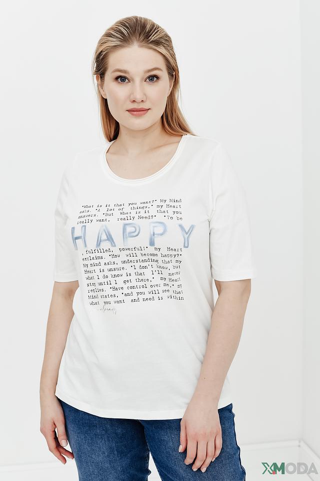 Белая футболка Via Appia с оригинальным принтом "HAPPY" — стильная и комфортная модель из 100% хлопка. Футболка имеет свободный крой и короткий рукав, идеально подходит для повседневной носки. Состав: хлопок 100%