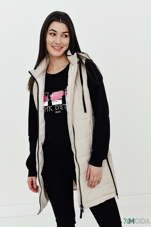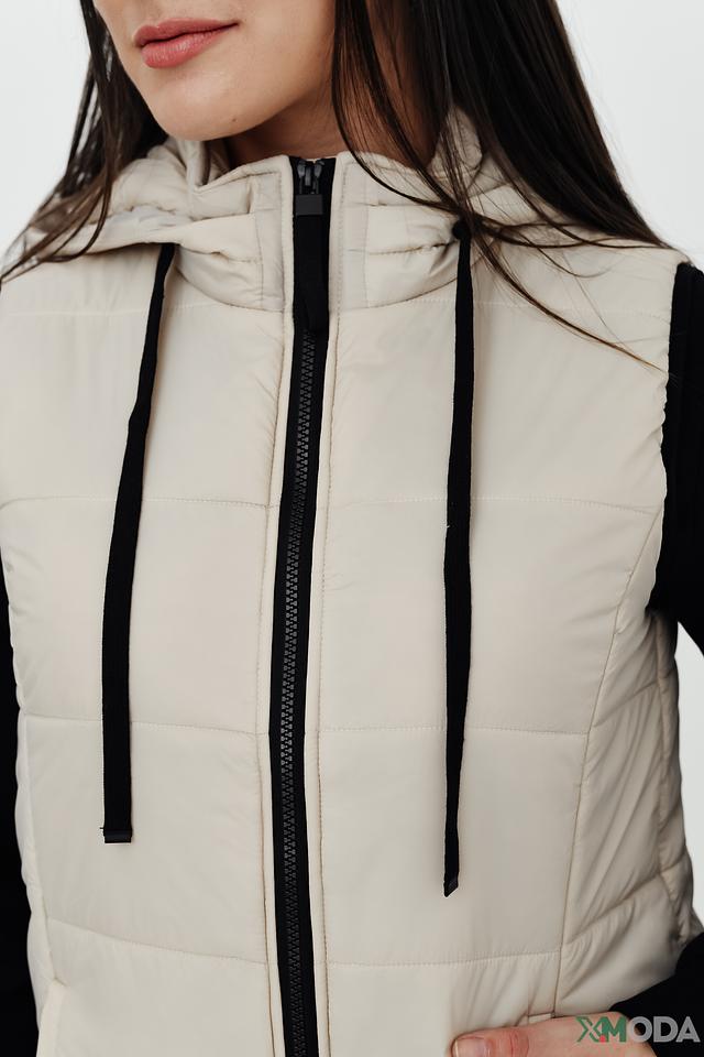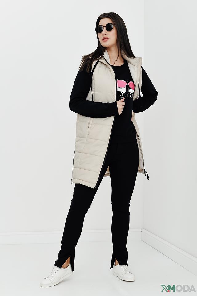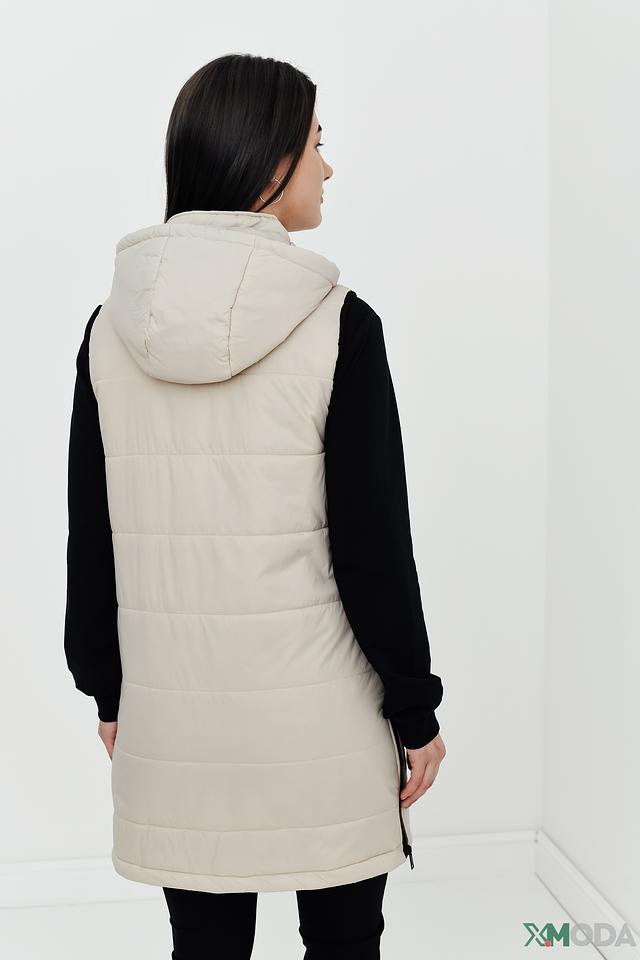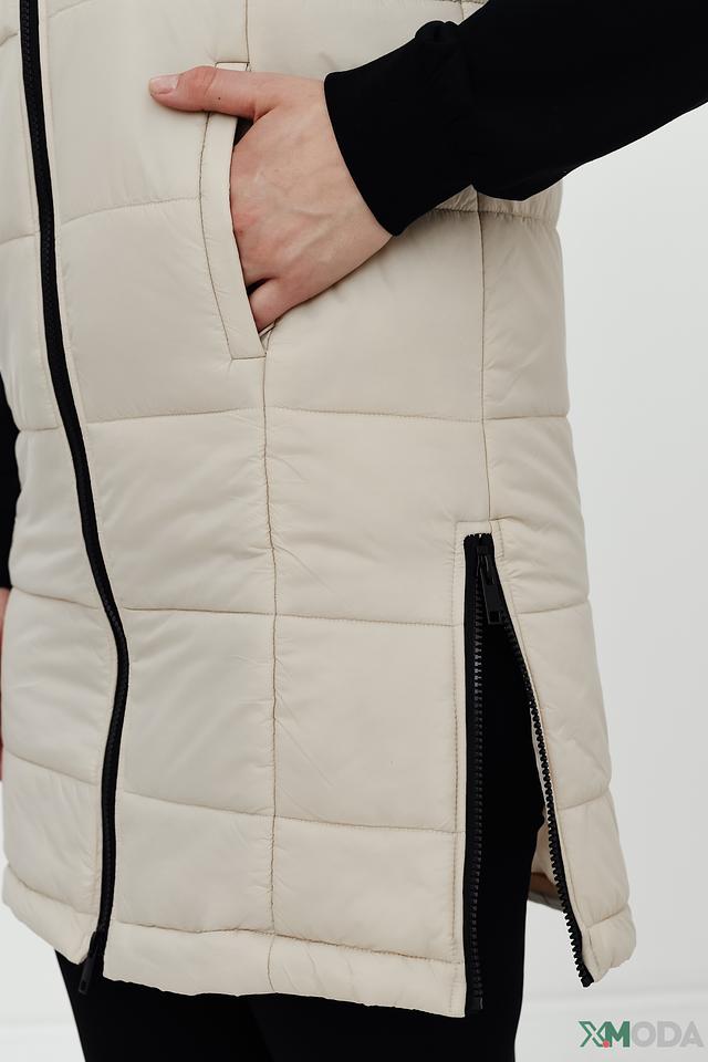 Жилет имеет удлиненный крой, который обеспечивает дополнительное тепло и комфорт. Стеганая текстура придает изделию современный и стильный вид. Капюшон добавляет функциональности, защищая от ветра и легкого дождя.