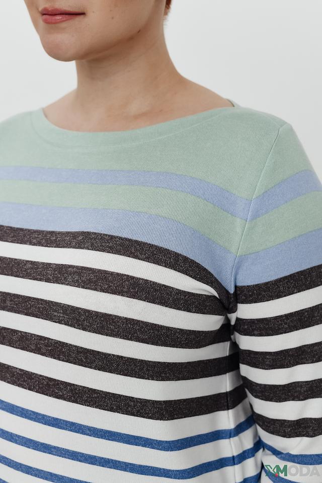 Женский пуловер Via Appia в полоску сине-зелёных оттенков – стильная и комфортная модель с рукавом 3/4. Изготовлен из мягкой вискозы с добавлением полиэстера и эластана, обеспечивающих приятные тактильные ощущения и хорошую посадку. Состав: вискоза 75%, полиэстер 20%, эластан 5%