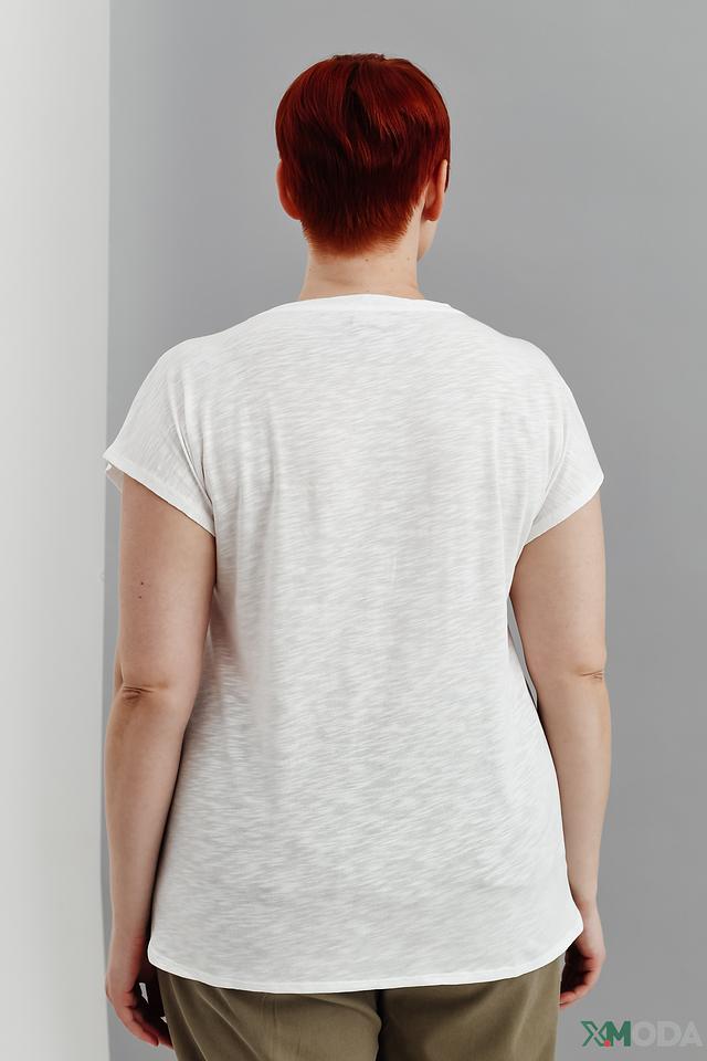 Эта футболка прекрасно сочетается с джинсами, шортами, юбками и брюками. Ее можно носить как самостоятельный элемент образа, так и под жакет или кардиган.