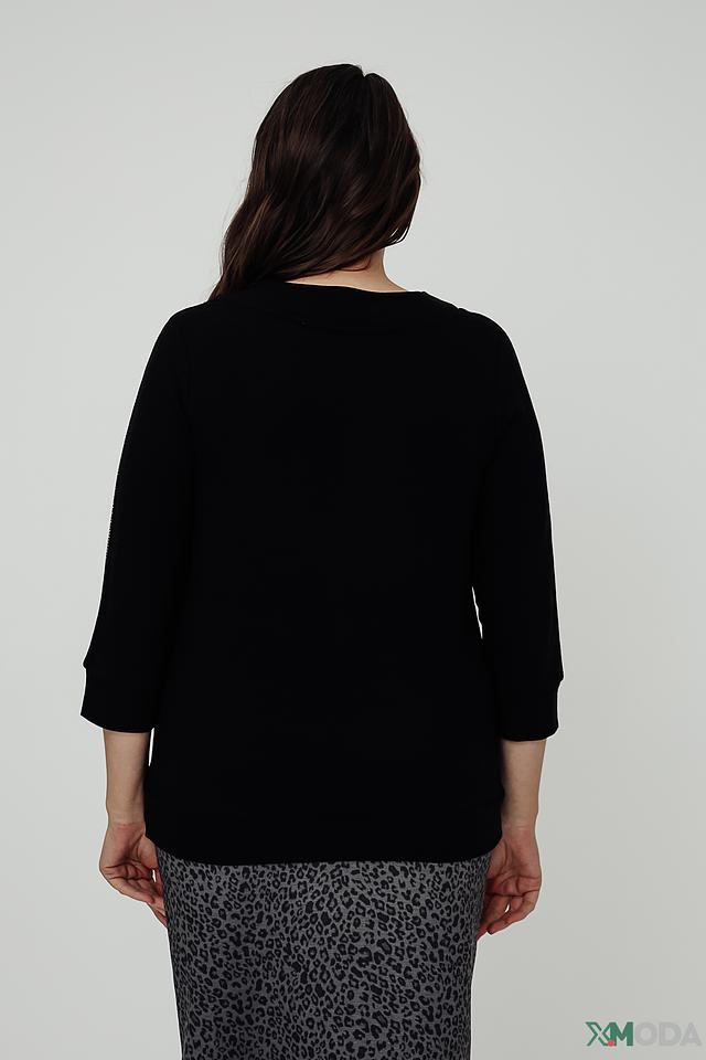 Чёрный пуловер Via Appia с рукавами 3/4 и декоративной отделкой — стильное и комфортное решение для создания повседневного образа. Модель дополнена шнурками на вырезе горловины и сверкающими элементами на рукавах. Состав: вискоза 59%, полиэстер 36%, эластан 5%