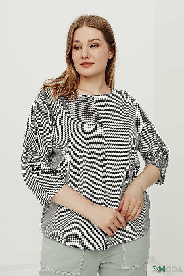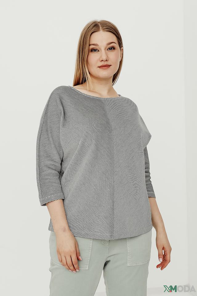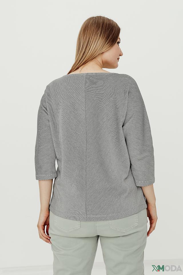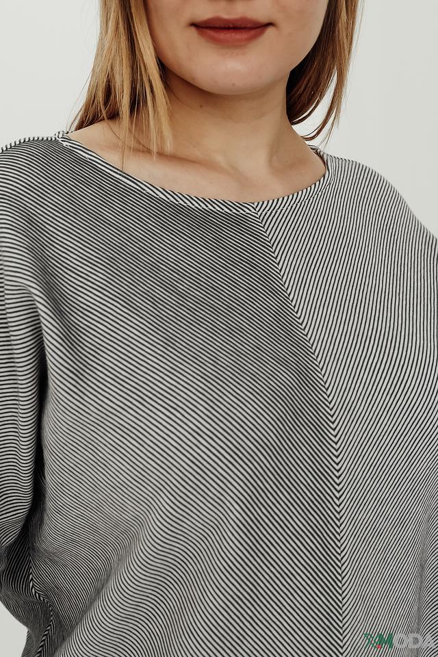 Пуловер имеет свободный крой, который не сковывает движений и позволяет создать расслабленный силуэт. Уникальный геометрический рисунок в виде полоски придает изделию оригинальность и стиль. Вырез горловины округлый, а рукава – три четверти, что делает этот пуловер универсальным для любого времени года.