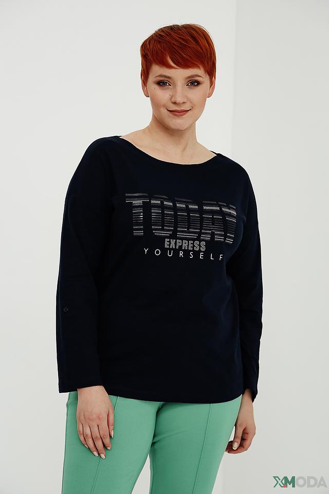 Модель имеет прямой крой и длинные рукава, на которых расположены аккуратные пуговицы. Передняя часть лонгслива украшена ярким принтом с надписью "Express Yourself", выполненным в графитовом цвете.