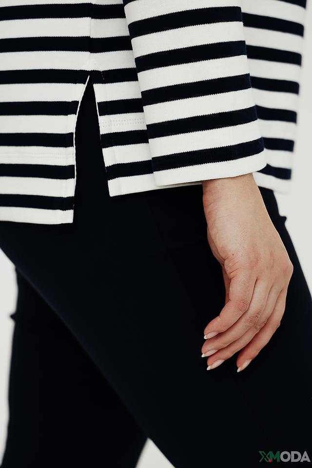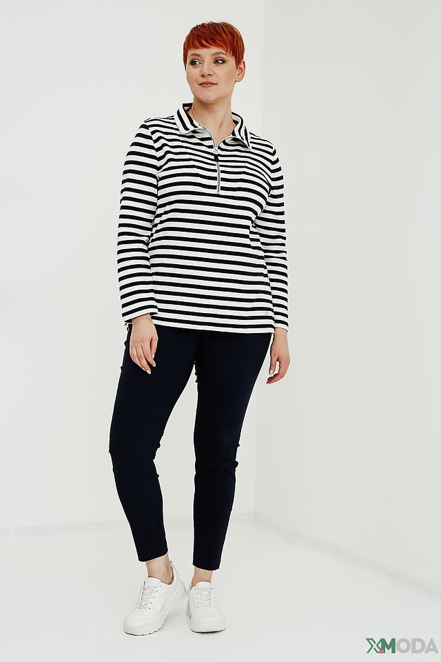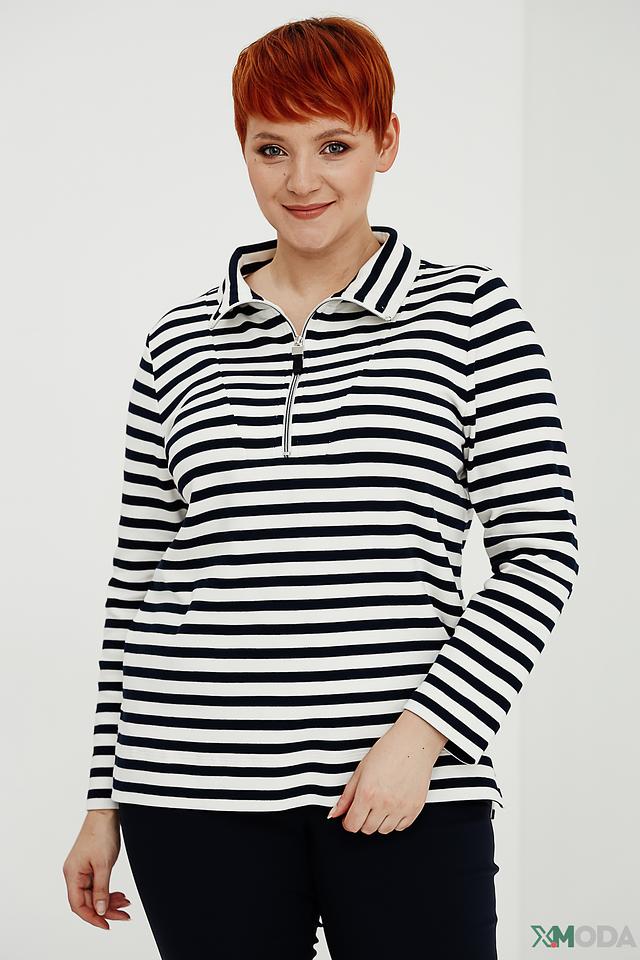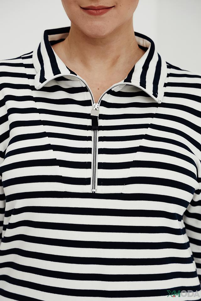 Женский пуловер Via Appia сине-белого цвета с полоской и застежкой-молнией на горловине. Изготовлен из 100% хлопка, обеспечивающего комфорт и удобство в носке. Стильный и практичный выбор для повседневного гардероба. Состав: хлопок 100%