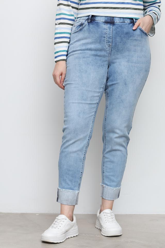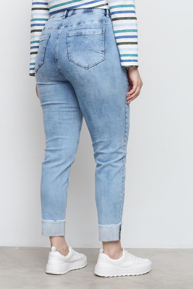 Женские джинсы Via Appia голубого цвета с завышенной талией и эластичным поясом. Модель выполнена в стиле casual с эффектом потертости и укороченными штанинами, застегиваются на пояс с резинкой. Состав: хлопок 97%, эластан 3%