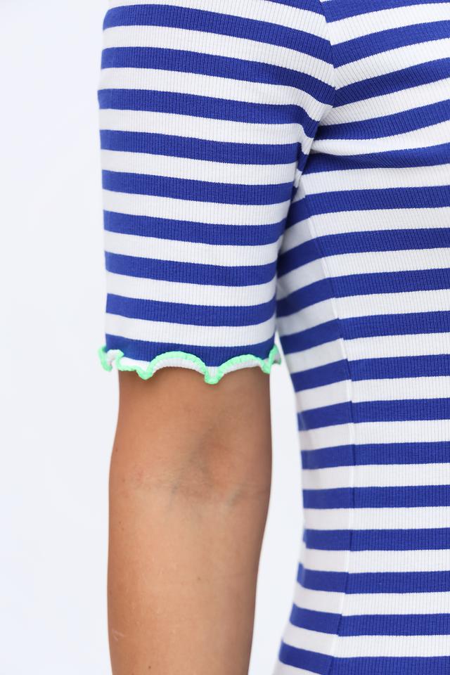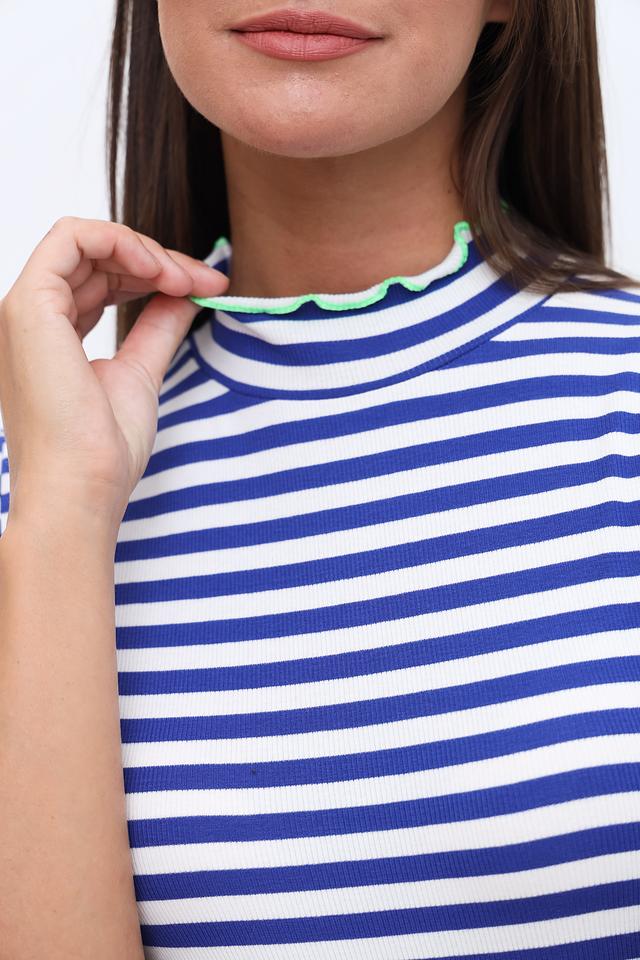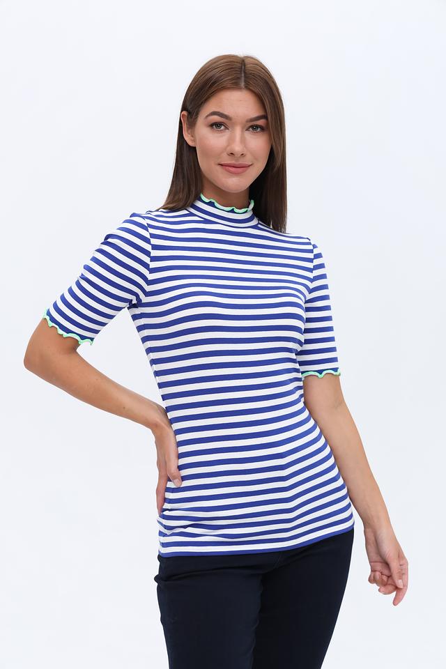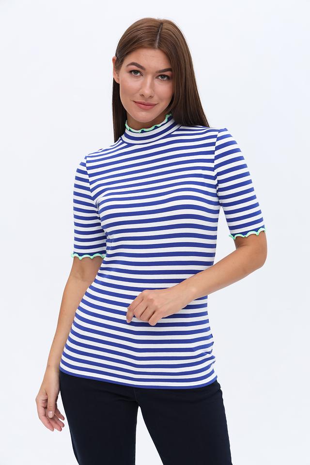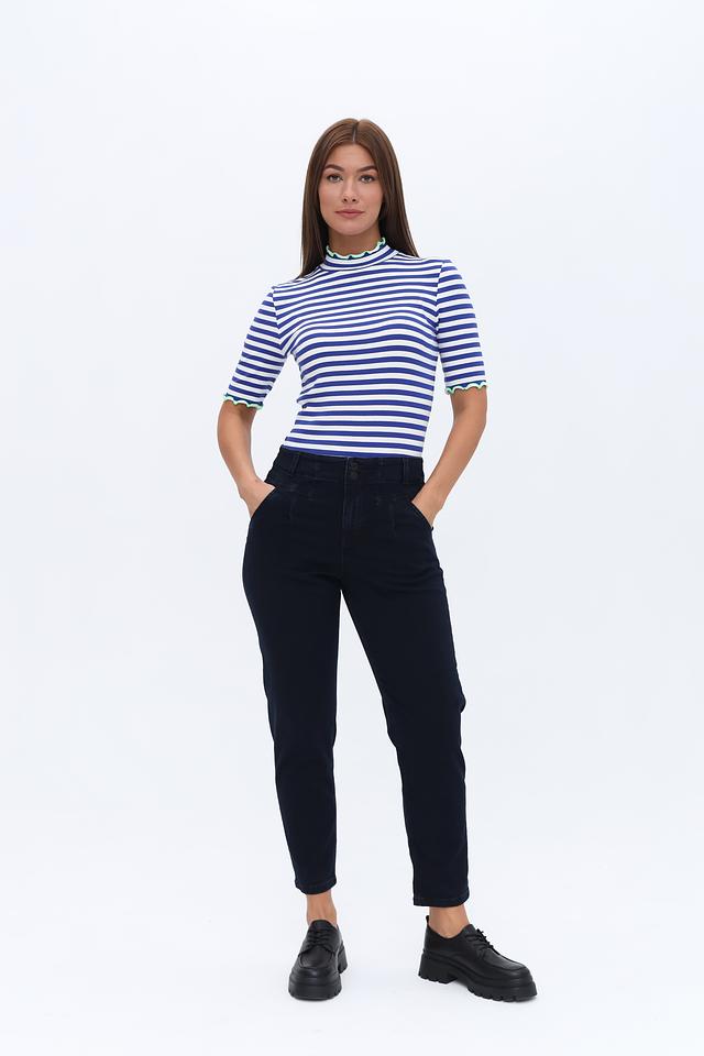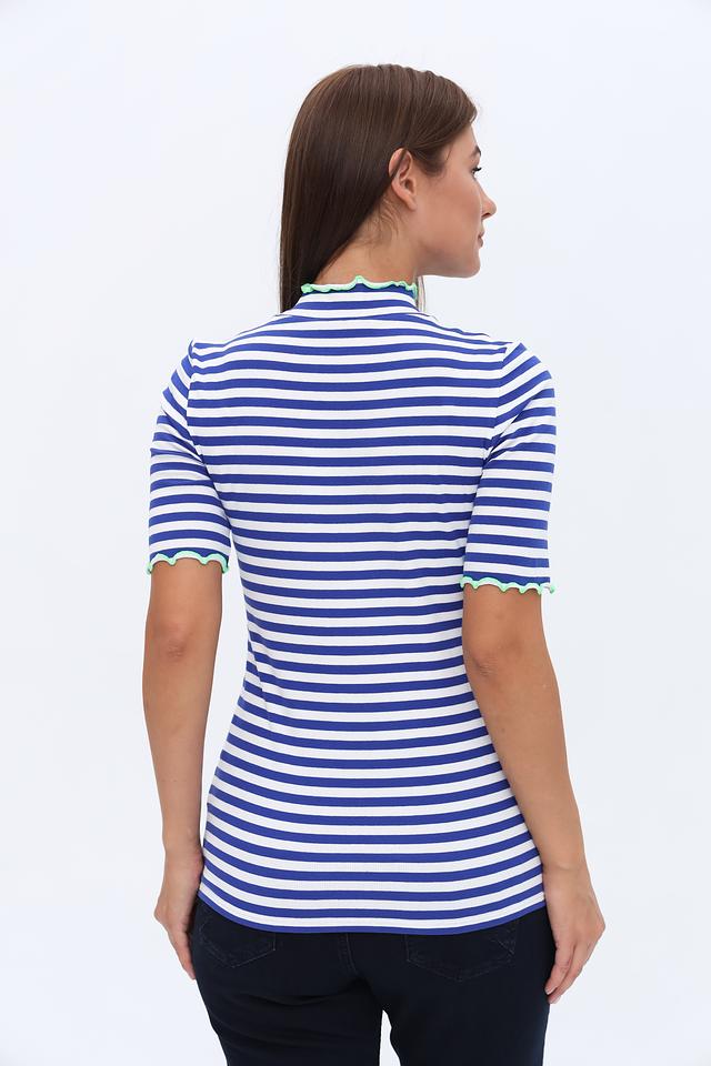 Водолазка от Oui синего и белого цвета с полосками – это стильная и удобная модель на каждый день. Изготовлена из хлопка с добавлением эластана для комфортной посадки и сохранения формы. Отличается оригинальным дизайном с отделкой. Состав: хлопок 95%, эластан 5%
