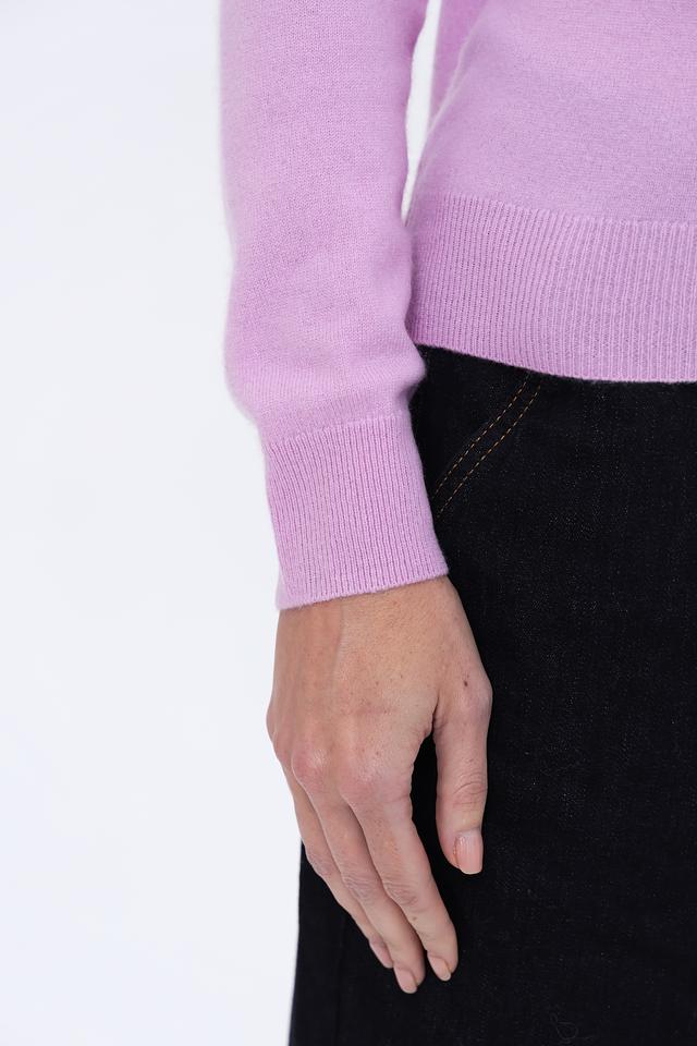 Водолазка имеет классический крой, который подчеркивает фигуру, не сковывая движений. Высокий воротник-стойка добавляет образу изысканности и защищает от холода. Нежный лавандовый цвет делает эту модель универсальной и легко сочетаемой с различными элементами гардероба.